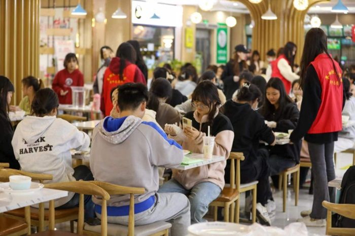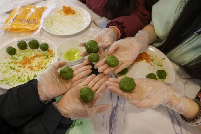 活动伊始,校团委老师讲述清明节的来历和风俗,清明吃青团是为了纪念先人、表达对祖先的思念与感谢,同时也象征着新希望、新生命,祈祷人口和家庭兴旺发达。随后,在食堂工作人员的指导下,同学们开始揉面、包馅、封口、塑型,在动手实践中感受中华文化的独特魅力。