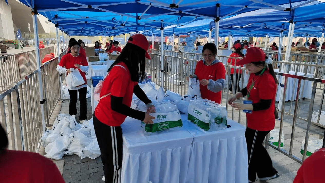 4月21日凌晨,全校756名青年志愿者在行知楼前整队集合,在带队老师和小组长的组织下,志愿者们按照编组有序排队上车,带队老师和组委会工作人员在此过程中再次强调了志愿服务过程中的注意事项。凌晨5点,全体志愿者分组乘车前往不同服务点位,按照岗位分工在赛道布设志愿者。6点38分,756名志愿者全部完成布岗,按照要求,志愿者们分布在舞台、入口安检、引导、入场检录、人墙、存取包、完赛包、欢乐跑奖牌发放、道路指引、比赛计时、补给站以及赛后拉伸、冰敷等点位。