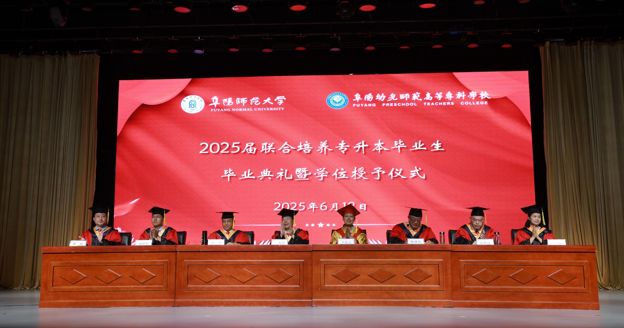 青春逐梦,扬帆启航。6月18日下午,阜阳师范大学与阜阳幼儿师范高等专科学校联合培养的2025届专升本毕业生毕业典礼暨学位授予仪式在阜阳幼儿师范高等专科学校演艺大厅隆重举行。245名莘莘学子在师长亲友的共同见证下,庄严接过学位证书,开启人生新征程。