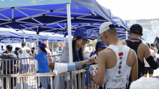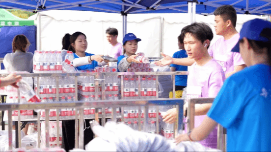 全情投入书写青春答卷 凌晨4点50分,天光未亮,志愿者在学校集合完毕,乘车前往指定服务点位。存取包志愿者仔细清点选手寄存包裹,有序码放;主舞台区域,礼仪志愿者反复练习规定动作,精准把握上台时间,微笑服务;完赛包发放志愿者为完赛选手发放奖牌和饮用水,热情点赞;拉伸小组为选手按摩拉伸,放松肌肉,帮助选手尽快恢复。志愿者们在坚守岗位,始终以认真、细致、专业的工作态度完成志愿服务活动,展示出我校学子青春靓丽的风采。