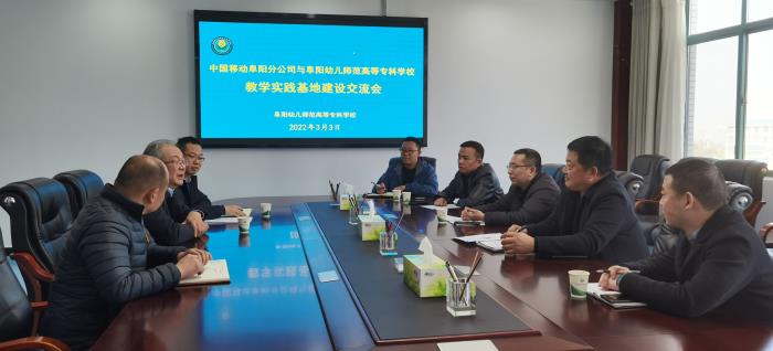 3月3日上午,我校与中国移动阜阳分公司深化合作座谈交流会在文津楼召开,校党委委员、副校长陈绪龙、中国移动阜阳分公司副总经理张建业出席会议,移动网络部主任郑峰、南区营销中心主任赵明、健康和管理学院负责人严岳峰、副院长王兴宏参加座谈。