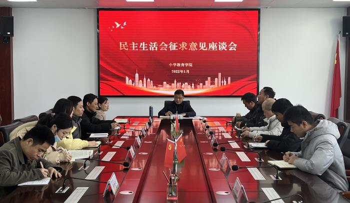 根据校党委关于开好党史学习教育专题民主生活会的部署要求,1月12日上午,校长汤志深入小学教育学院,主持召开党史学习教育专题民主生活会征求意见座谈会,邀请我院10位教师代表,对照“学史明理、学史增信、学史崇德、学史力行”和“学党史、悟思想、办实事、开新局”的目标要求,重点围绕本次专题民主生活会5个方面的征求意见内容,对校党委过去一年的工作提出意见建议,为校党委高质量开好专题民主生活会打下坚实基础。出席座谈会的代表有我院党政领导、高层次人才、民主人士、青年教师和辅导员。