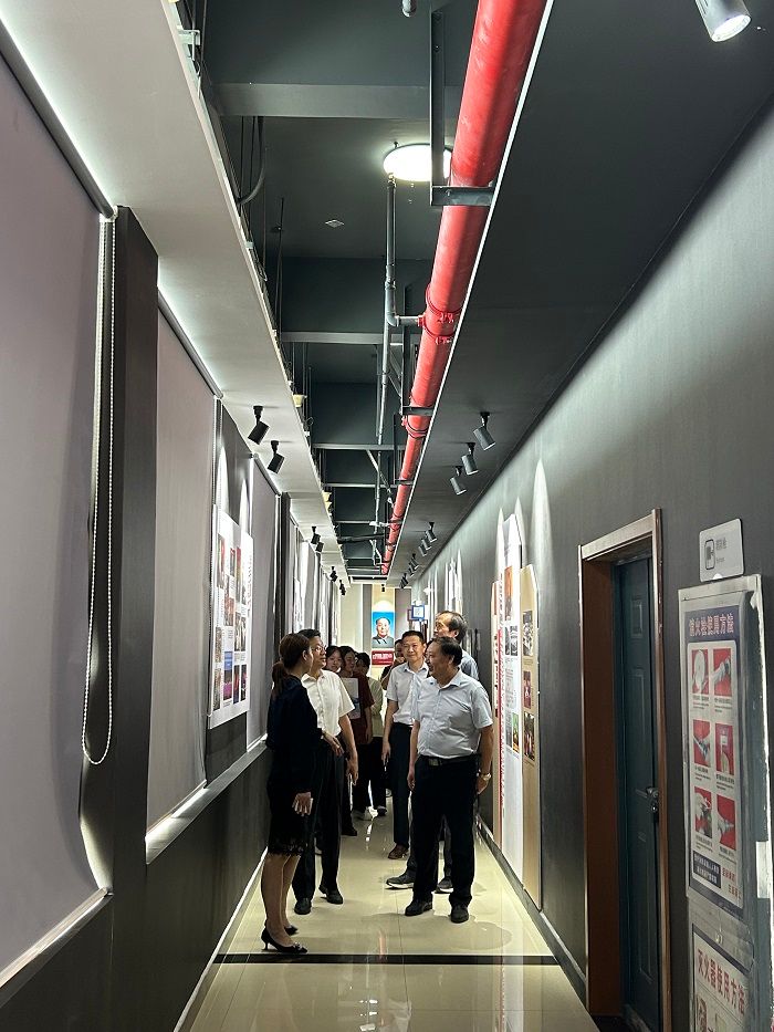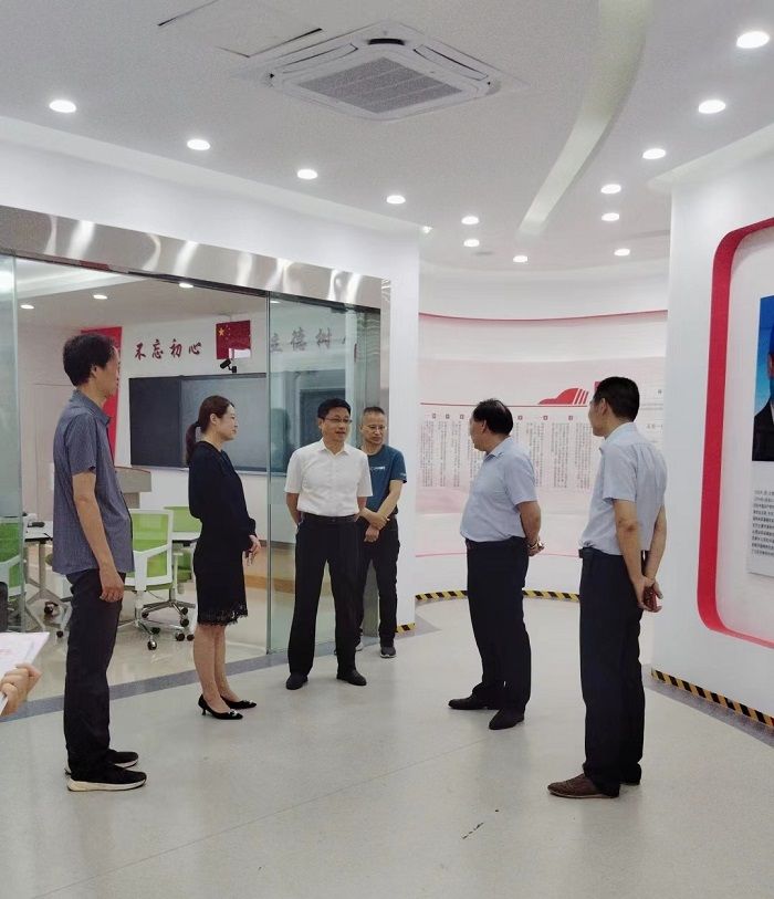 马克思主义学院党支部书记、院长何丽娜作了简要讲解并介绍了我校思政课教学改革情况。汪芳启一行参观了虚拟仿真思政课体验中心百年党史文化长廊影音学习角印说党史思源读书角新时代传习室互动体验角红色影院中国共产党人精神谱系智慧教室等模块