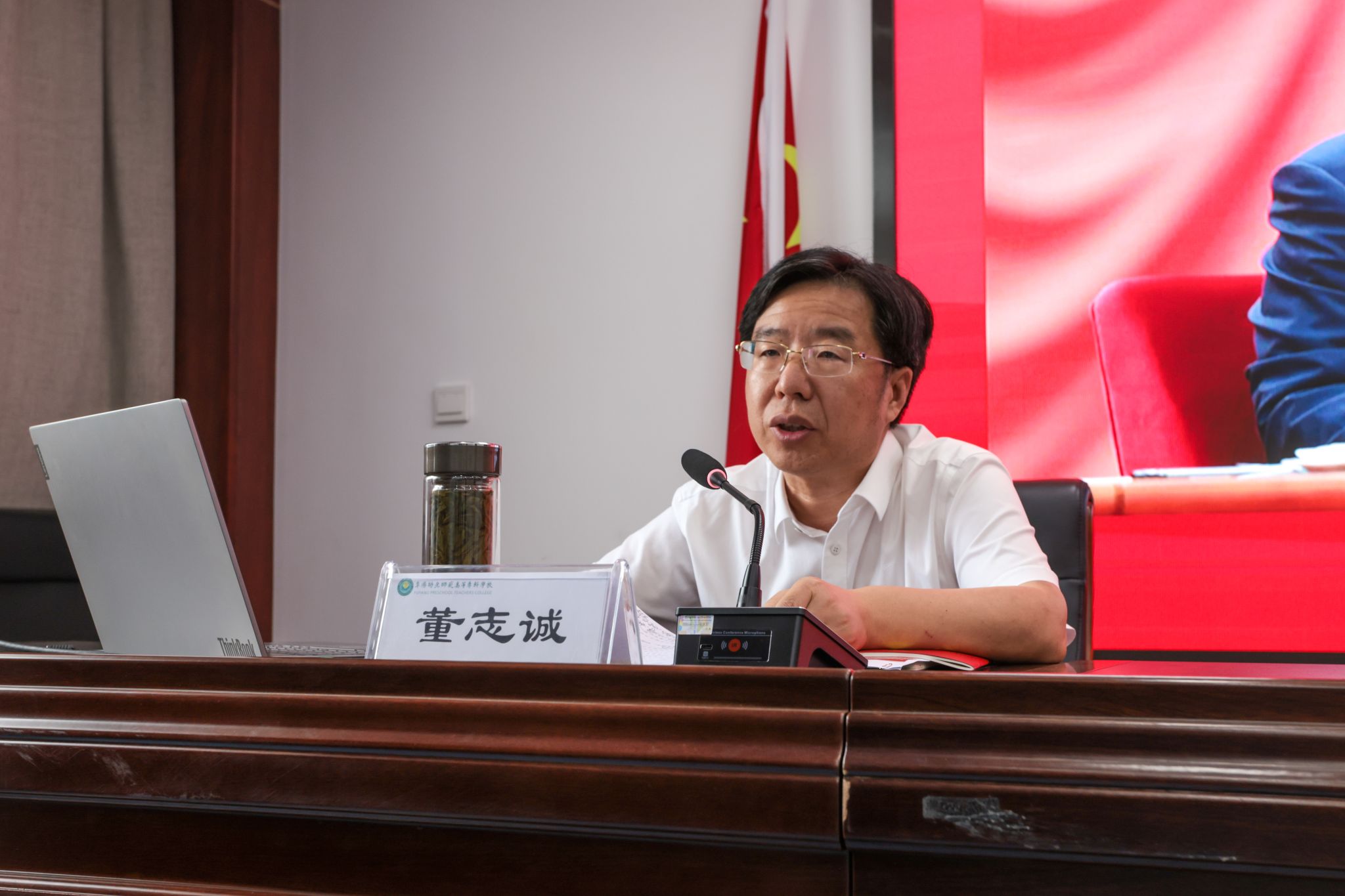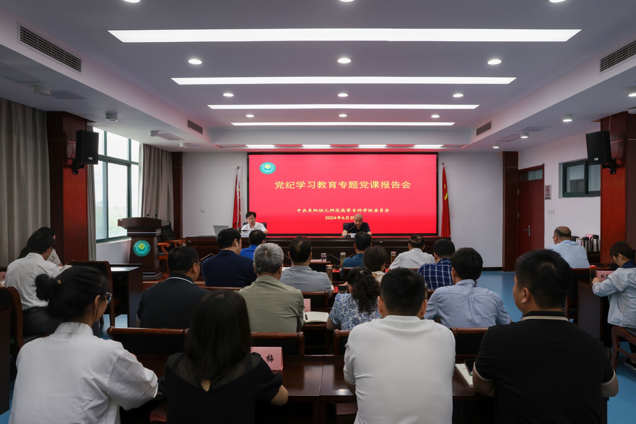 为进一步推深做实党纪学习教育,“七一”前夕,6月28日,学校党委书记董志诚以“做实党纪学习教育、推进全面从严治党,为学校高质量发展提供坚强纪律保障”为主题,作党纪学习教育专题党课报告。校领导班子成员、中层副职以上党员干部、各基层党组织书记、教师党员代表和学生党员代表参加党课报告会。校党委副书记于华献主持党课报告会。