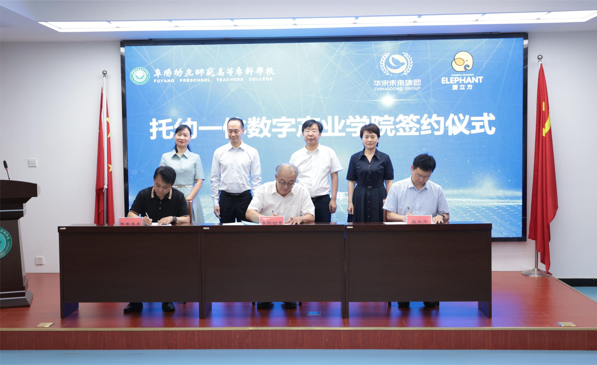 董志诚在致辞时指出,此次阜阳幼专与华宋未来教育科技集团、武汉爱立方儿童教育传媒股份有限公司共同成立阜阳幼专托幼一体数字产业学院,既是贯彻党的二十大精神的实际行动,也是构建托幼一体化服务体系的有效支撑,更是推进校企融合共建学前教育高水平专业群的有益探索,有利于充分调动各自优势资源,全面优化调整我校专业布局,深化产教融合、科教融汇,建强幼教托育、智慧养老相关专业,实现教育链、人才链与产业链、创新链有机衔接,为我市打造“三地一区”、建设“十个区域性强市”奋斗目标贡献阜阳幼专力量。