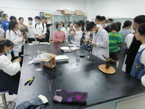 在标本制作室,师大的学生为我院师生演示了动物标本的制作过程,激发了我院师生对生物标本制作的兴趣。(图/文:李盈盈 刘博 审核:郭玉敏)