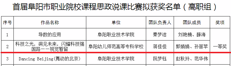 1月12日,阜阳市教育局、阜阳市职业教育集团公布了首届阜阳市课程思政说课比赛比赛结果,我院入围决赛的蒋佳佳、郭娟娟、孙丽苹3位老师荣获一等奖。