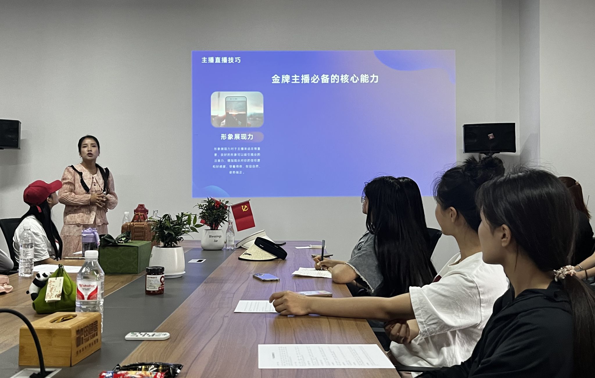 下午2点半,田园居的金牌主播邢维娜为同学们带来了一堂生动的《金牌主播要具备哪些能力》专题讲座。邢主播结合自身丰富的实战经验,深入浅出地讲解了直播话术的逻辑构成,以及如何通过有效的沟通技巧吸引观众,提升直播间的互动性和销售转化率。