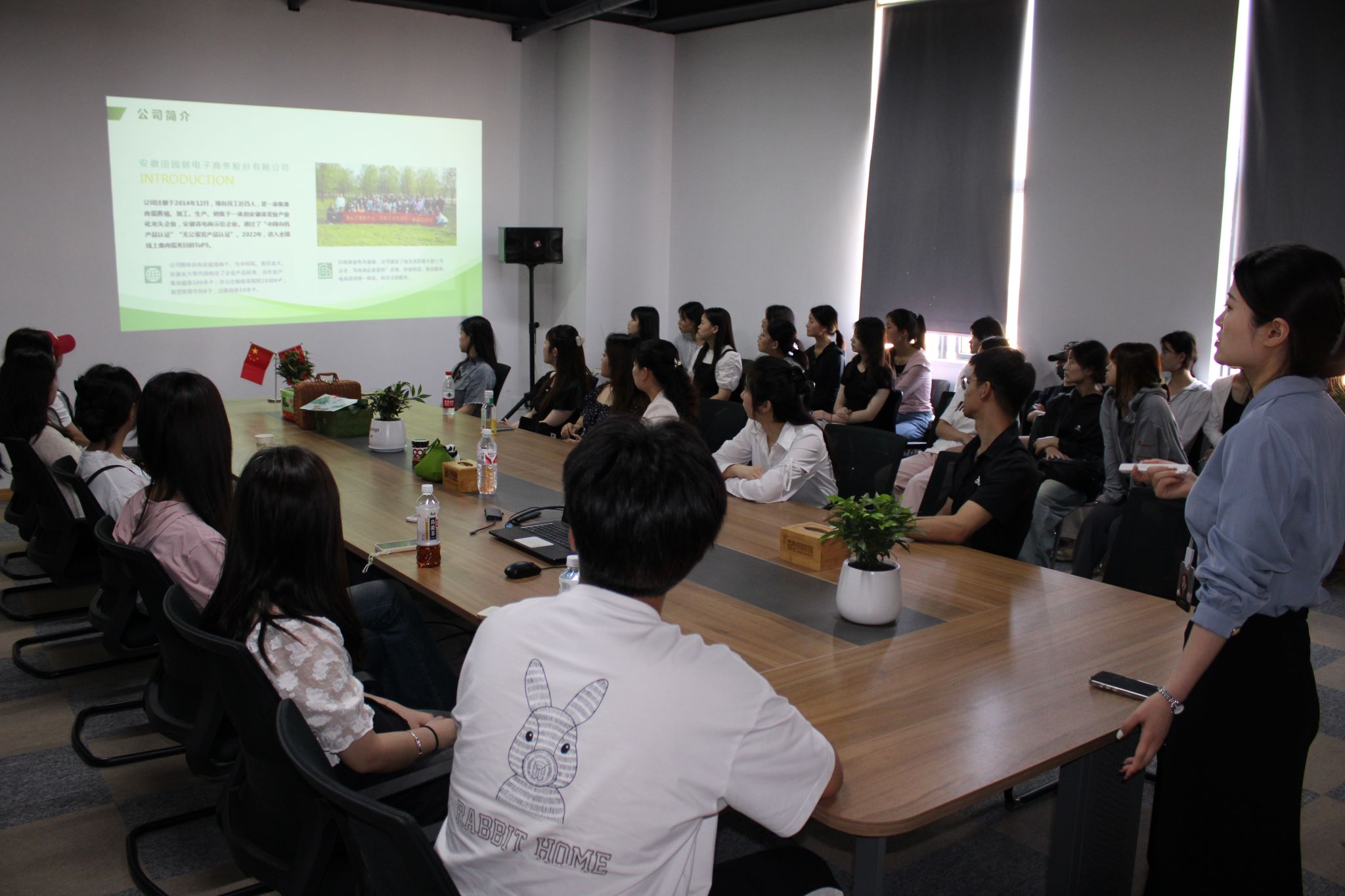 66日上午8点半,小教学院院长郭玉敏,指导老师李想、张佳乐及艺体学院艺术设计专业老师,带领23播音1班的同学们前往安徽田园居电子商务股份有限公司,开启了一场关于现代电商直播行业的深度体验与学习之旅。