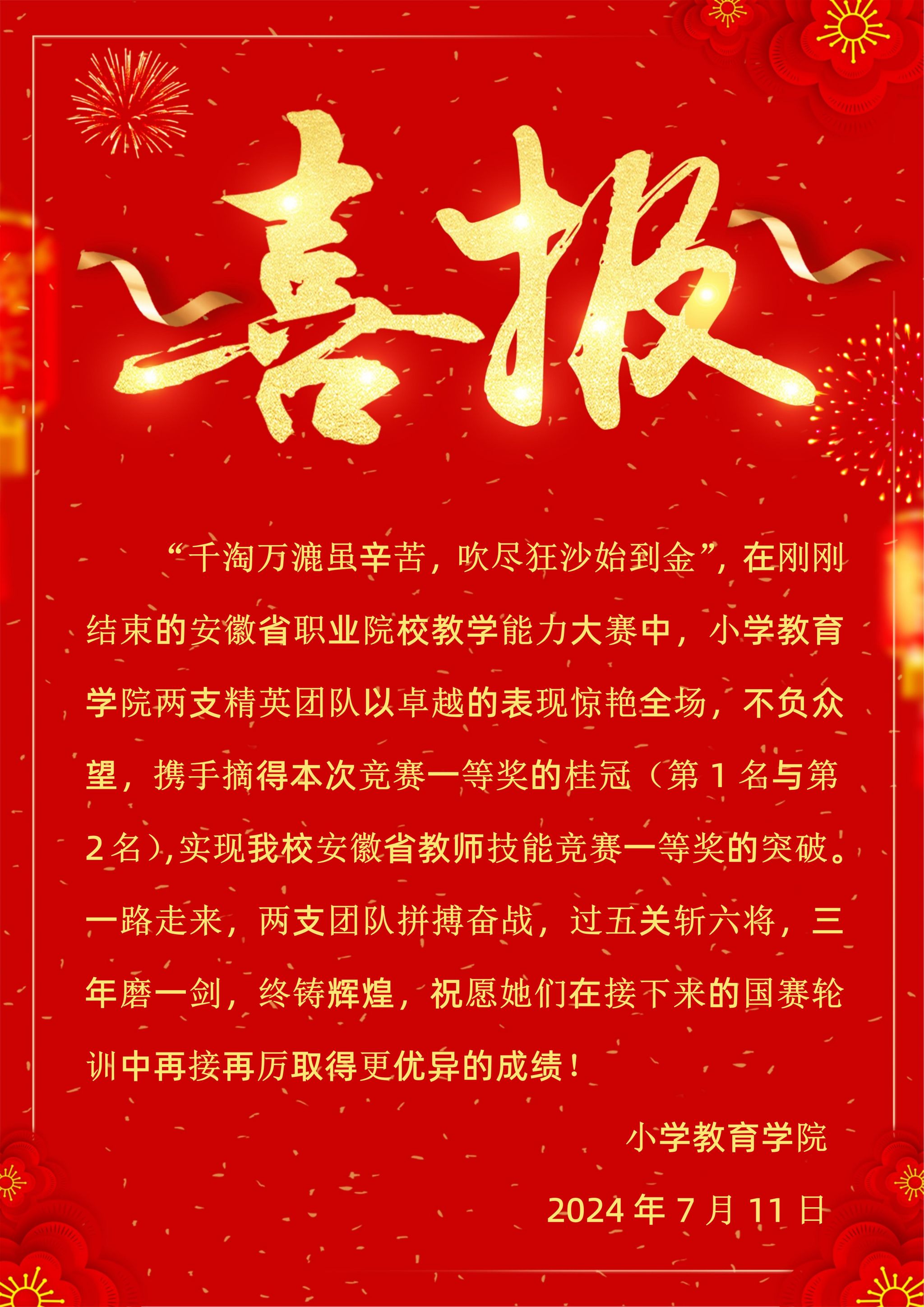 下一条:安徽省教学技能大赛再传捷报:我校小学教育学院两支团队双双荣获一等奖,取得历史新突破