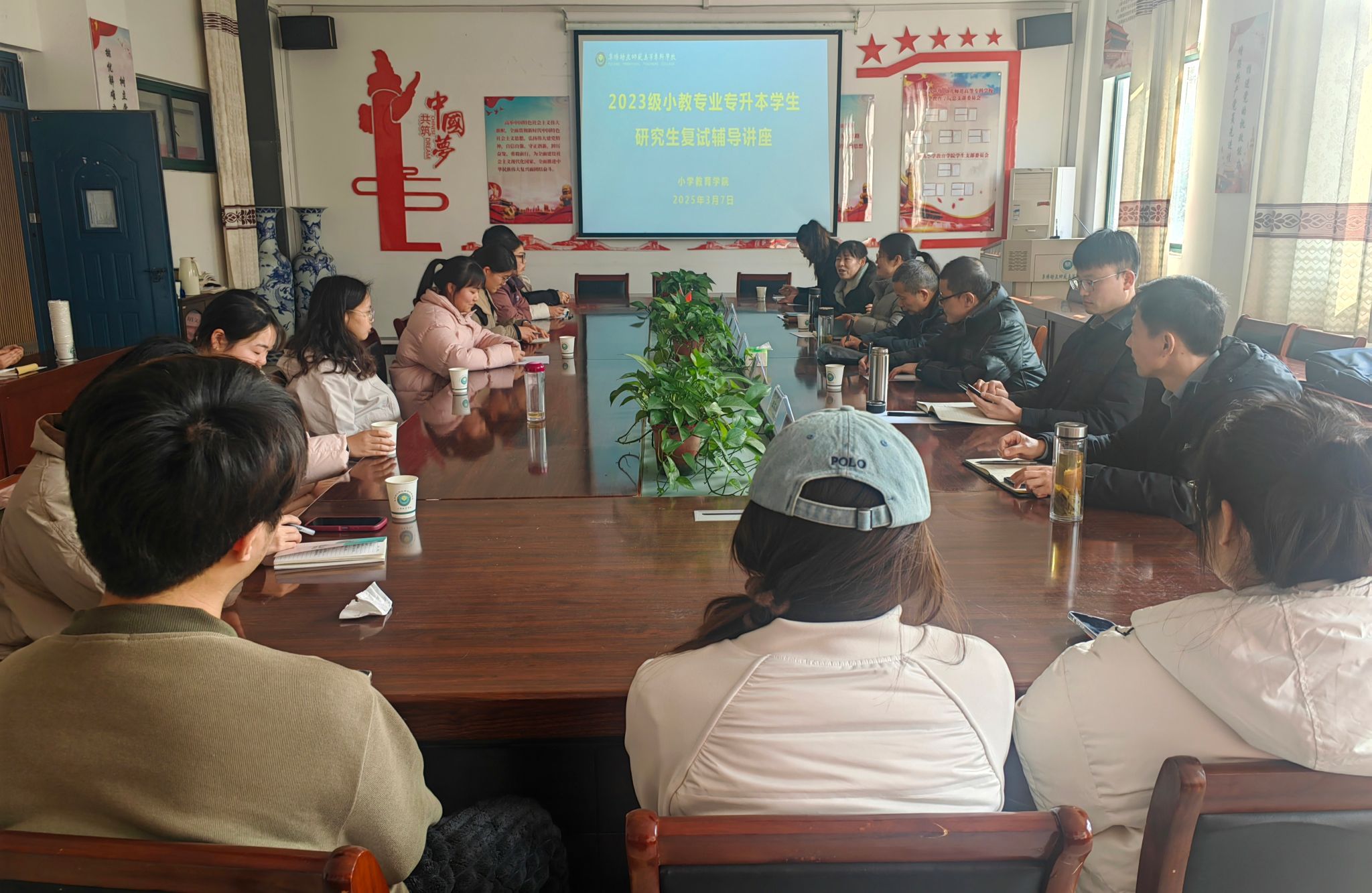 为扎实推进2025届专升本联合培养毕业生考研升学工作,全面提升考研学子复试成功率,3月7日,小学教育学院邀请阜阳师范大学教育学院汪杰锋教授一行4人,在文津楼201举办考研复试指导讲座。学院院长郭玉敏主持,党总支书记朱启俊、毕业班辅导员及我校2025届考研初试上线同学参加。