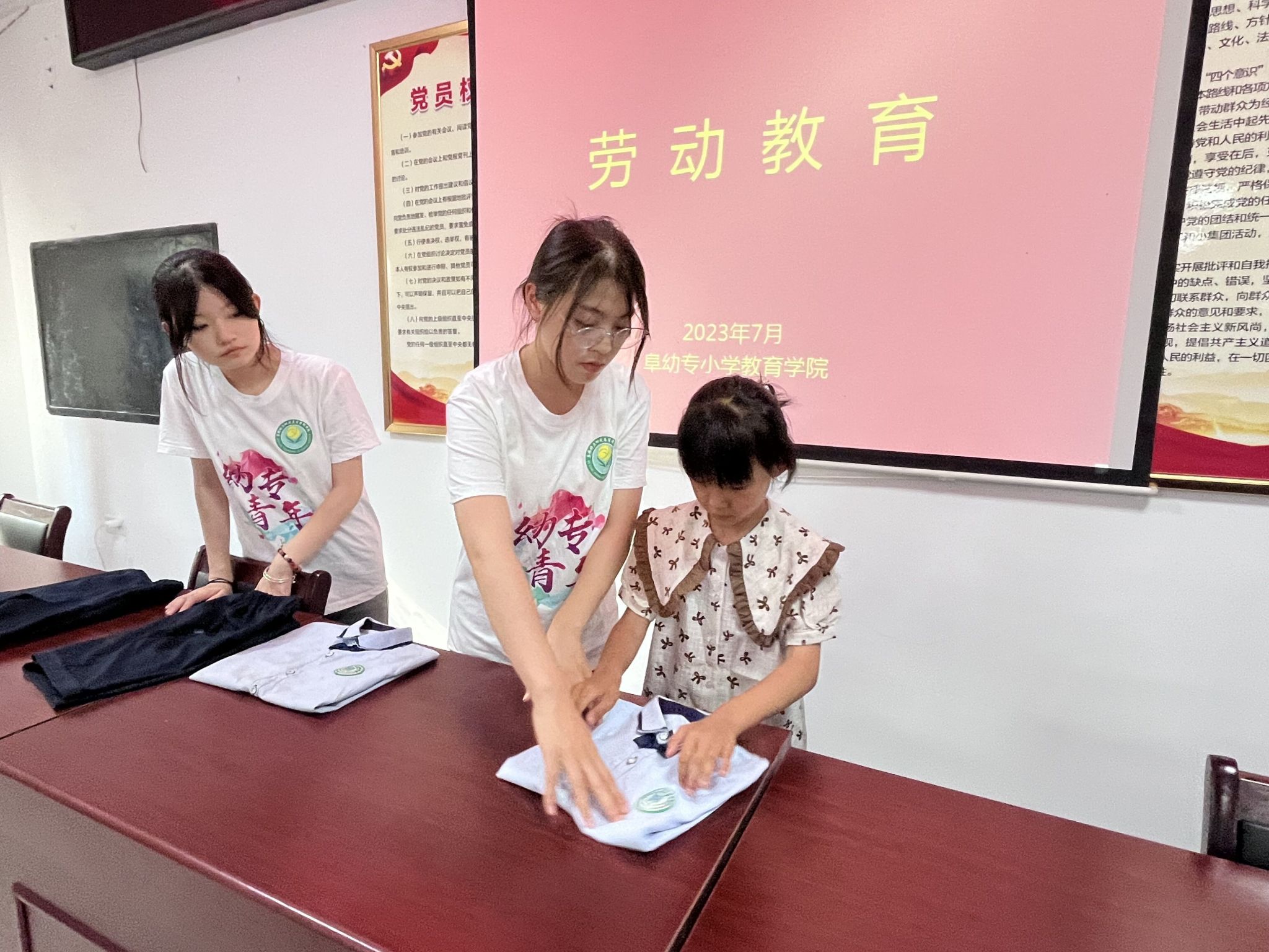 劳动弘扬:在劳动课堂上,同学们很认真的学习叠衣服和叠被子,课程结束后还帮忙打扫教室卫生。一年级的姚一诺同学说:“我现在已经迫不及待要回家帮家人打扫卫生啦,以前都是他们把我照顾的很好,现在我也要做一些力所能及的事情。”