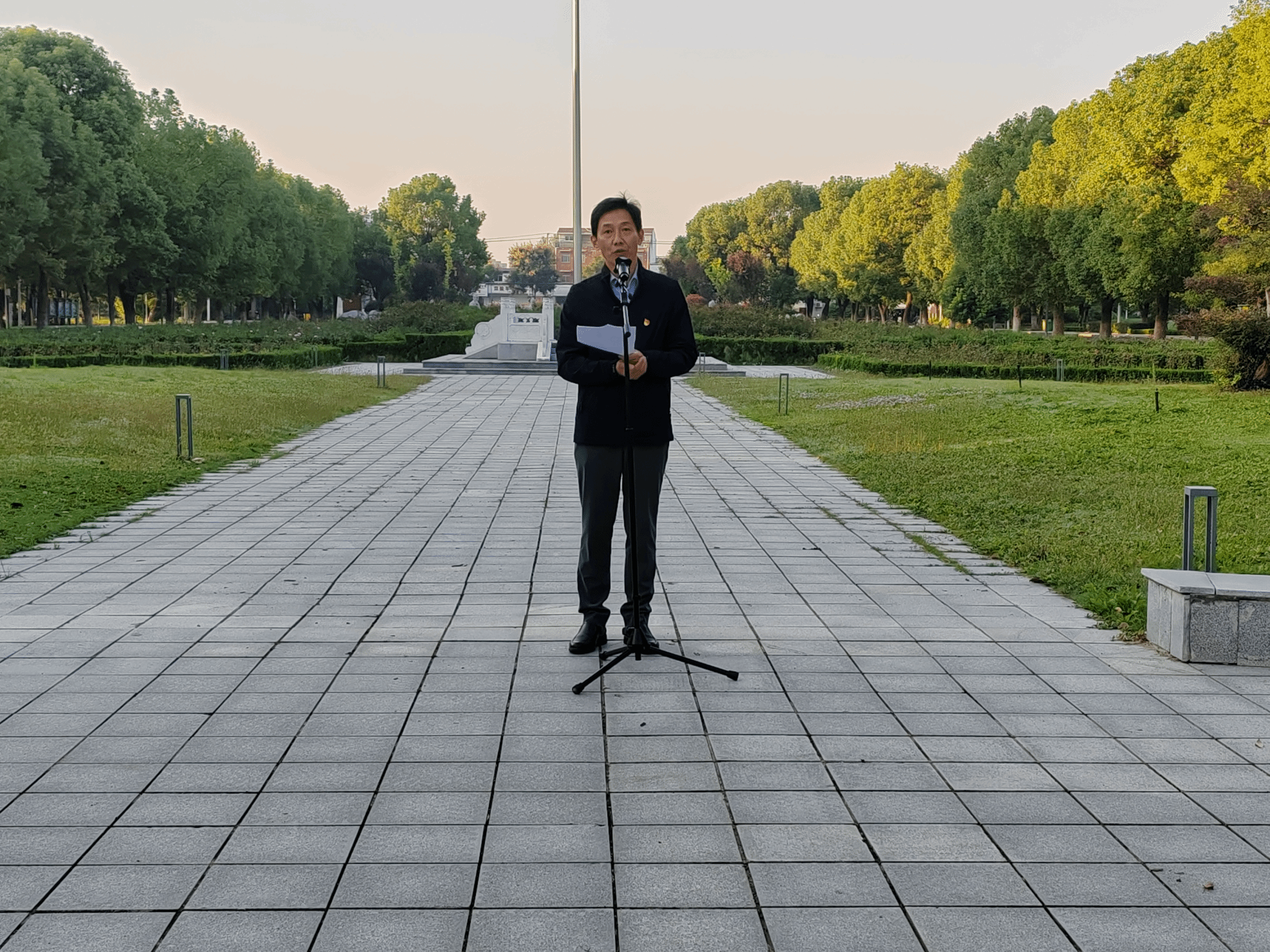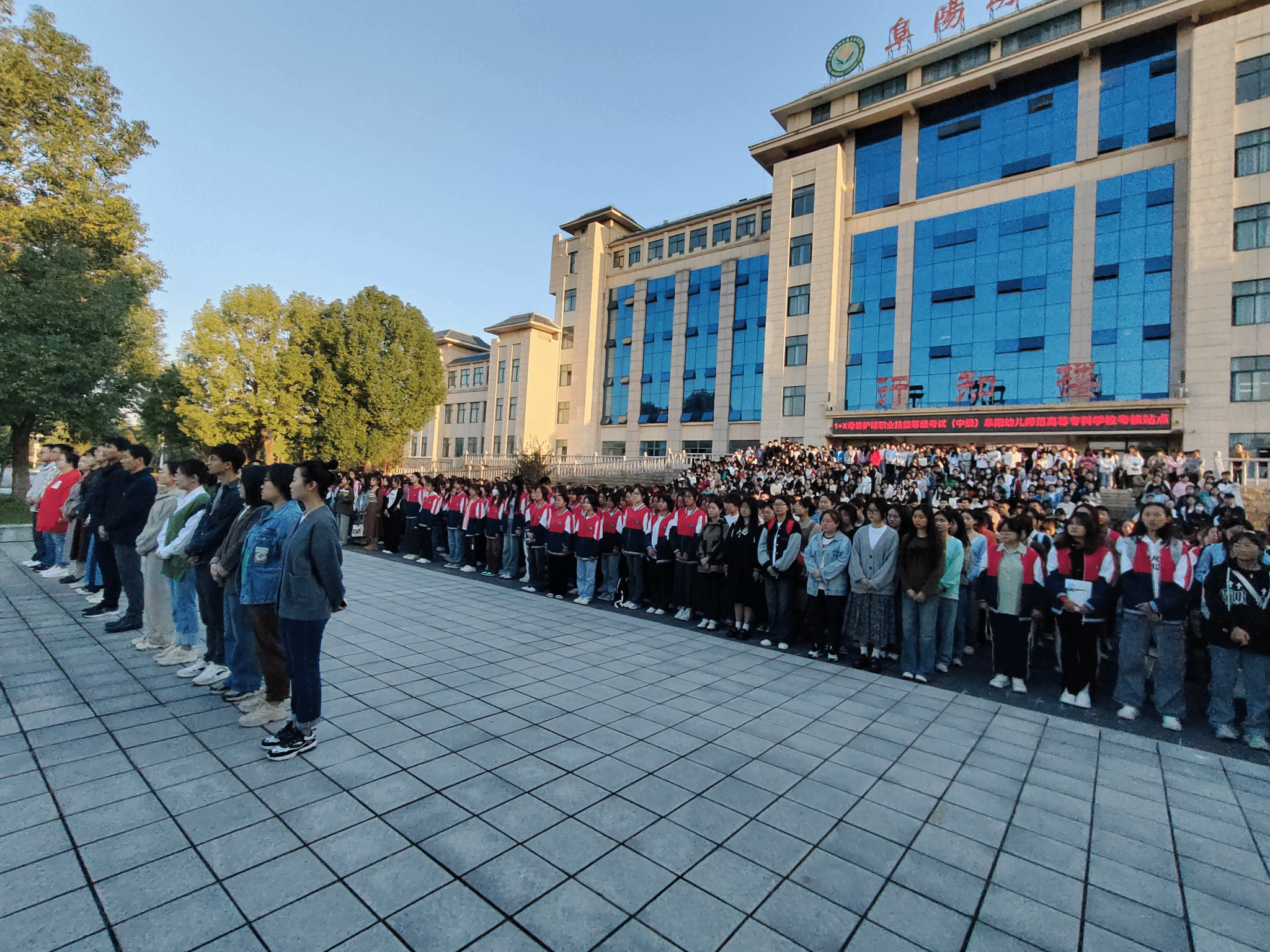 早上7时整,迎着朝阳,在雄壮的国歌声中,鲜艳的五星红旗冉冉升起,全体师生庄严肃穆,高唱国歌,表达对伟大祖国的诚挚热爱和美好祝愿。21小教2班冯鹏扬同学进行国旗下的幼专青年说,并向全体学生发出在新的征途上建立功绩,捍卫华夏的倡议。