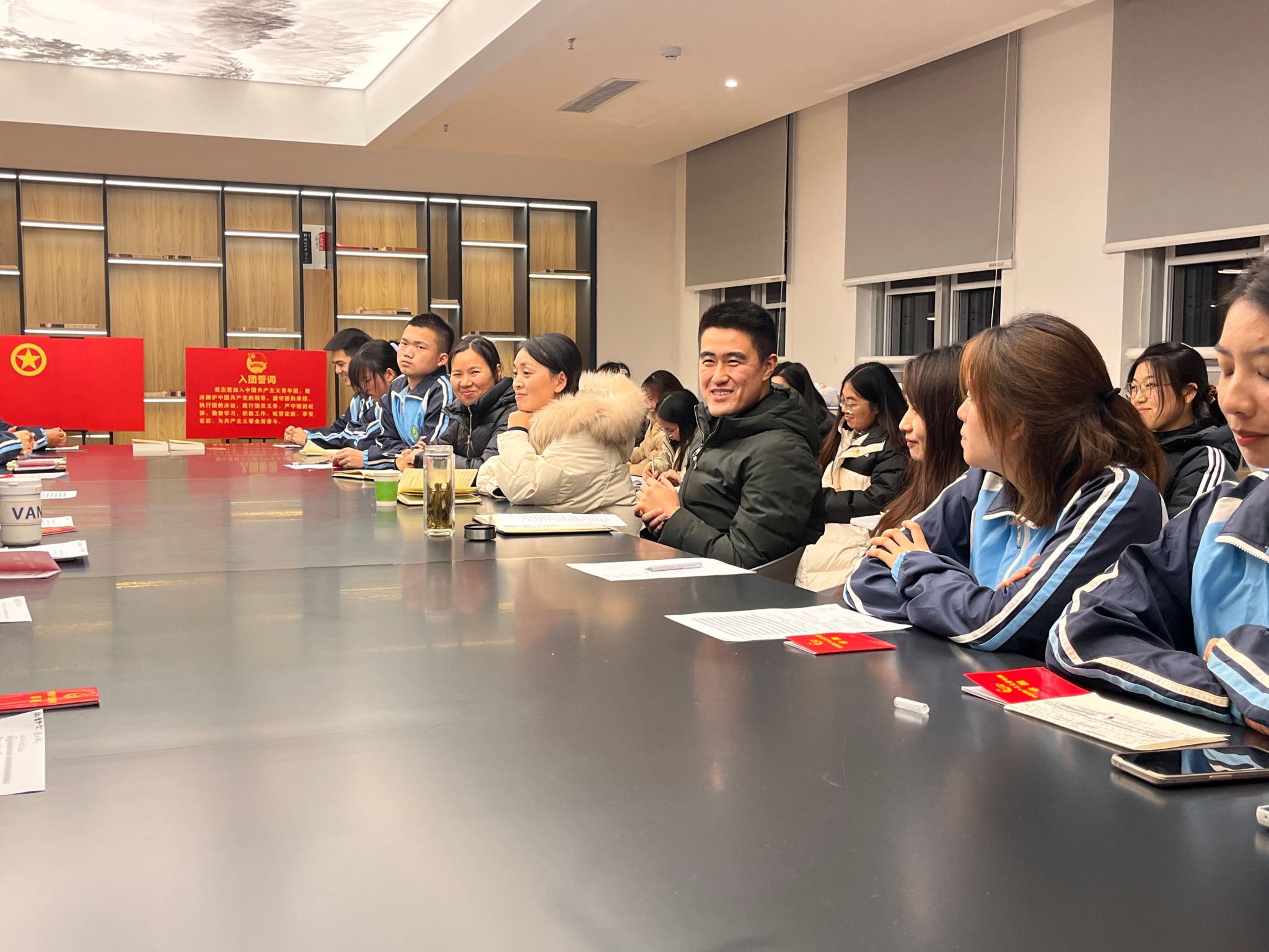 校团委负责人高天睿老师对团支部开展团员和青年主题教育工作情况给予了肯定。高天睿老师强调,党旗所指就是团旗所向,全体团员要坚定理想信念、自觉爱党爱国,坚定不移听党话、跟党走,争做有理想、敢担当、能吃苦、肯奋斗的新时代好青年。要树立远大理想、校准人生航向,做到心有大我、至诚报国,在强国建设、民族复兴的历史潮流中确立正确的人生目标,为一生的奋斗奠定基石。要努力增长才干、走稳人生道路,做到勤学肯干、走稳脚下之路,脚踏实地、奔赴未来之路。