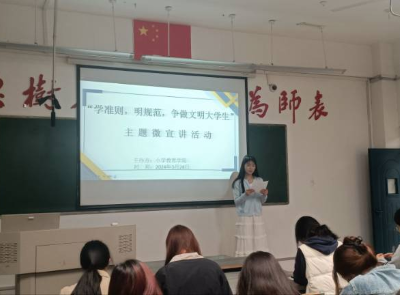 3月17日在文津楼301举行了“学准则、守规范、争做文明大学生”微宣讲活动。邀请院优秀学生会干部吴佳萱、优秀班干部汪雨洁、优秀团干部文相捷、三好学生陈珊开展了一场内容丰富的行为规范微宣讲活动。通过分享他们的先进事迹和成功经验,进一步弘扬正气,树立榜样,引导广大学生自觉遵守行为规范,培养良好的行为习惯和道德品质。