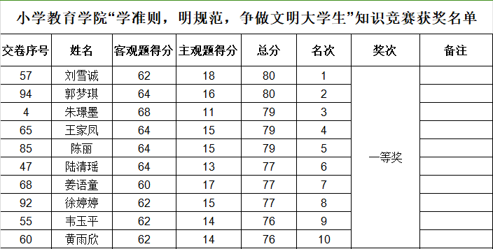 为了全面了解同学们在活动月期间的学习成果,3月21日晚,在文津楼301、302教室精心组织了一场知识竞赛。此次竞赛的试题内容广泛且深入,涵盖了《高等学校学生行为准则》《阜阳幼儿师范高等专科学校学生违纪行为处理办法(修订)》的核心知识点。旨在全面检验同学们对相关规定的理解和掌握情况。经过激烈的角逐,最终刘雪诚等10位同学获一等奖。