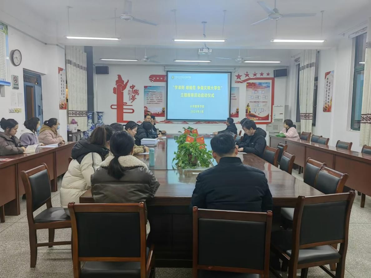 3月3日,学院在文津楼201室举行“学准则、守规范、争做文明大学生”主题教育活动启动仪式,全体辅导员及学生代表共同参加启动仪式,学院党总支负责人朱启俊出席活动并发表讲话。他强调,学习准则、遵守规范是每位大学生应尽的义务,也是成为优秀人才的必要条件。他要求各班级要深入学习相关准则,严格遵守各项规范,积极争做文明大学生的典范,为学院的文明建设贡献自己的力量。