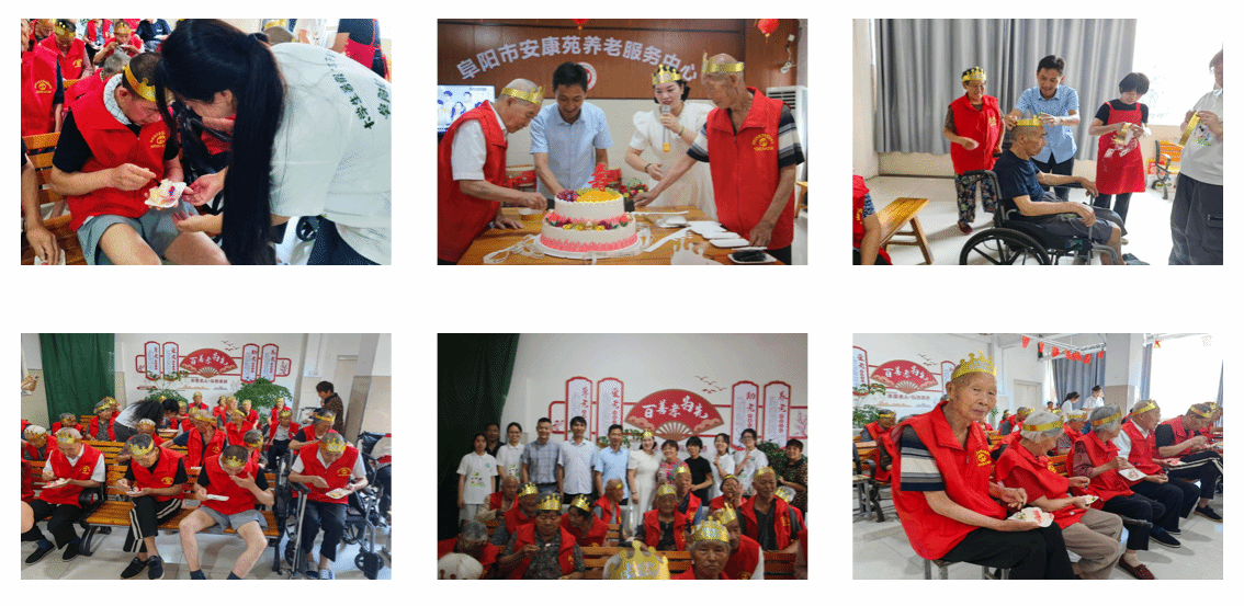 正午的阳光斜照进活动室,当双层长寿蛋糕被缓缓推入时,掌声与欢呼瞬间填满了整个空间。蛋糕表层用鲜红果酱勾勒的 “福寿康宁”四字遒劲有力,周围点缀的芒果块与黄桃片像一簇簇青春的火焰,映照着老人们幸福的脸庞。实践团成员们和老人们一起围在蛋糕前,闭上眼睛,默默为老人们许下美好的祝福。