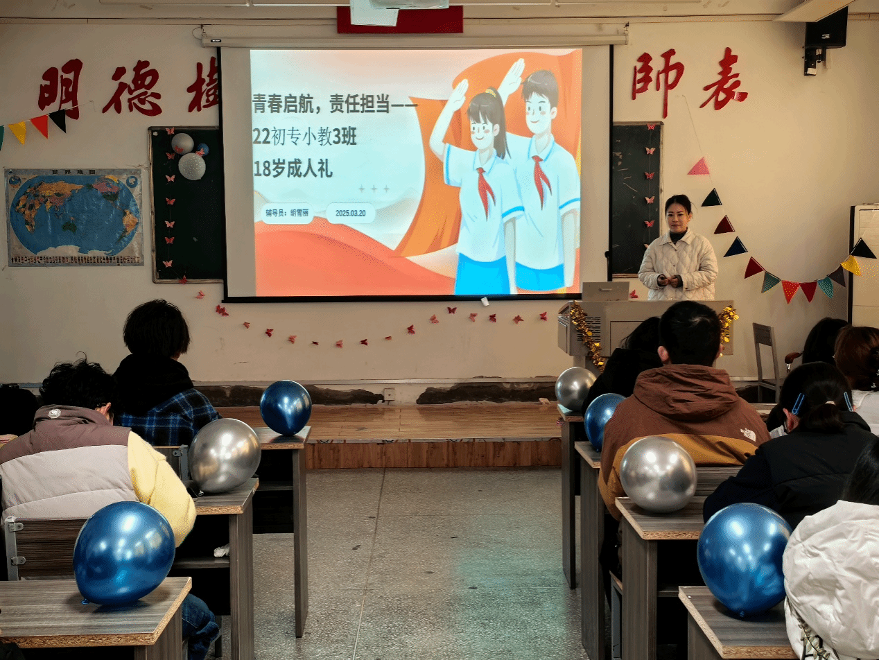 3月20日上午,小学教育学院22初专小教3班在文津楼202教室举行“青春起航,责任担当”18岁成人礼主题班会公开课。班会由辅导员胡雪丽老师召开,学生处领导及各学院辅导员代表到场观摩