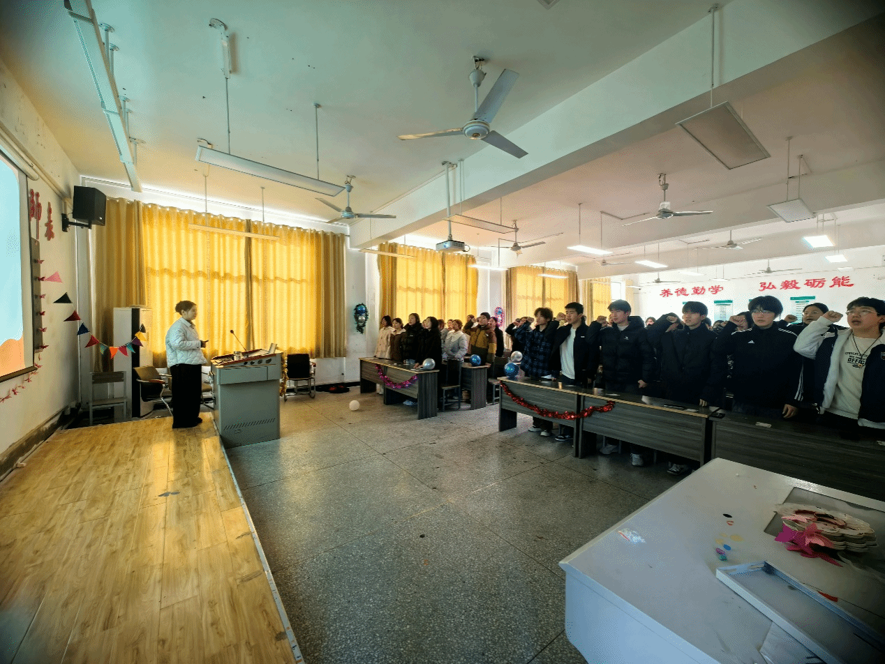 胡雪丽老师以“成长VS现在”为切入点,通过展示50名学生的成长照片,唤起了大家的集体记忆,温暖的回忆与现场的庄重氛围交织,彰显了青年学子的成长与担当。在成人礼环节,全班庄严宣誓,铭记个人的责任与担当;在感恩与祝福环节,屏幕上播放了学长的寄语、父母的祝福以及老师的教诲,现场洋溢着轻松而温馨的气氛。