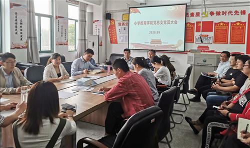 为落实校党委关于调整教学单位基层党组织设置的方案,充分发挥基层党组织在学校内涵式发展中的战斗堡垒作用,9月30日,小学教育学院在党员活动室召开党总支党员大会,学院全体党员、预备党员参加了会议,本次会议由院长郭玉敏主持,组织人事处副处长高天睿一行出席并指导会议各环节。