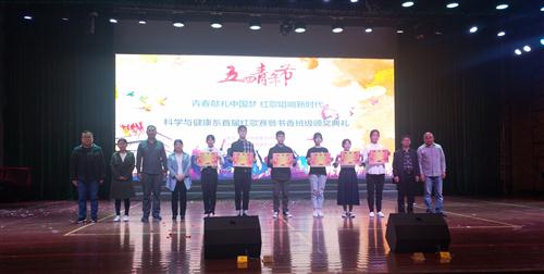 在五四运动100周年来临之际,为进一步弘扬“爱国、进步、民主、科学”的五四精神,激发青年的爱国情怀,丰富学生的校园文化生活,积极引导广大青年坚定“四个自信”,为实现中华民族伟大复兴的中国梦奉献青春力量,4月24日晚,科学与健康系在演艺大厅举办“青春献礼中国梦,红歌唱响新时代”为主题的首届红歌赛暨书香班级颁奖典礼,校团委书记石磊、我系系主任郭玉敏及师生代表参加了本次活动。同时,为加强我系学风建设,营造书香校园氛围,培养学生良好的读书习惯,鼓励和引导学生多读书、读好书,红歌赛之后,郭玉敏和各位评委老师为我系书香班级评选中获奖班级颁奖。