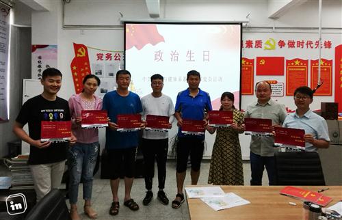 为了增强党员的荣誉感与责任感,我支部为六月份入党的8位党员开展了“政治生日”活动。娓娓道来的入党故事、铿锵有力的誓言、语重心长的寄语给全体党员上了一堂直抵人心的 “情境党课”。