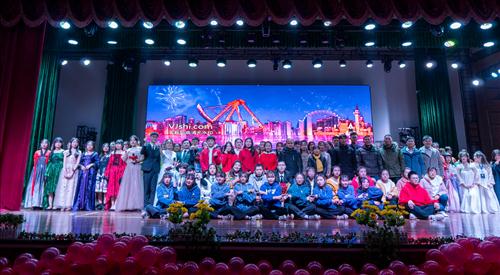 触动回忆的歌曲串烧、热血沸腾的现代舞蹈、令人惊叹的古典舞、诙谐的小品……一个个精彩的节目给同学们带来了一场视听盛宴。抽奖环节和互动环节更是调动起同学们的热情,场面异常火热。最后,晚会在一曲《相亲相爱》中落下帷幕,各位领导、老师、演出人员及工作人员上台合影留念。