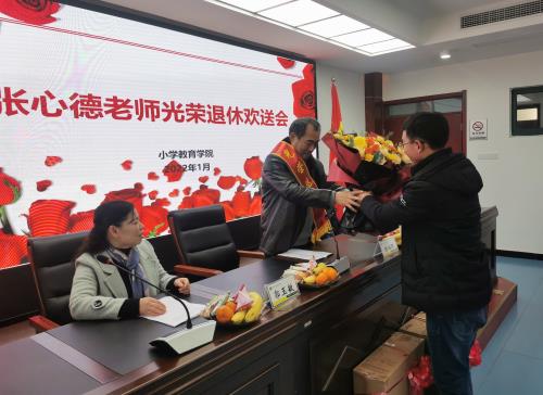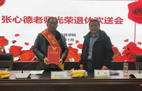 会上,青年教师代表刘俊为张老师献花,校工会副主席王刚给张心德颁发光荣退休证书,学院工会小组组长付红波代表学院为张心德赠送纪念品。张心德深情回顾了自己的工作经历,感谢学校党委和学院精心准备的欢送会,表示感受到学校的关怀,很有自豪感与幸福感,祝福学校的明天更加美好,并表示定会常回家看看。