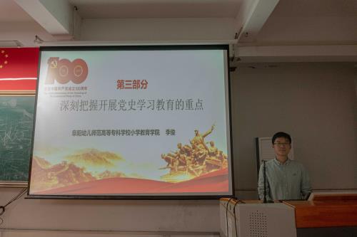 李俊带领大家回顾了中国共产党百年奋斗的光辉历程和历史性成就,要求师生把握党史学习教育的重点,树立正确的党史观,在党史学习教育中,传承红色基因,激扬奋进力量。