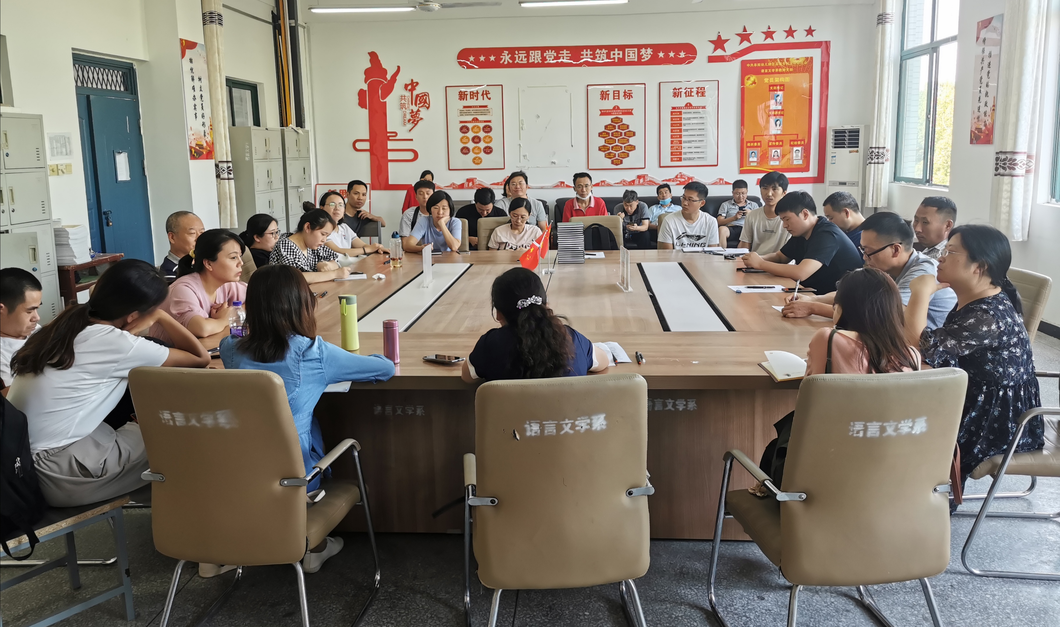 会上,郭玉敏首先对原科学与健康系和原语言文学系所取得的成绩进行了回顾,并对新学期工作和迎评工作作以部署。郭玉敏指出,新学期学院要紧紧围绕学校中心工作,在教学科研、专业建设和学科特色凝练等工作上不断加码发力,力争在2020年取得更好的成绩。接着郭玉敏宣读了《阜阳幼儿师范高等专科学校建立健全师德师风建设长效机制实施办法(试行)(征求意见稿)》和《阜阳幼儿师范高等专科学校师德负面清单及失范行为处理办法(征求意见稿)》,并组织全体教师展开讨论。最后,郭玉敏传达了学校《关于开展“我为‘十四五’规划献一策”活动的通知》,并动员全体教师积极参与。