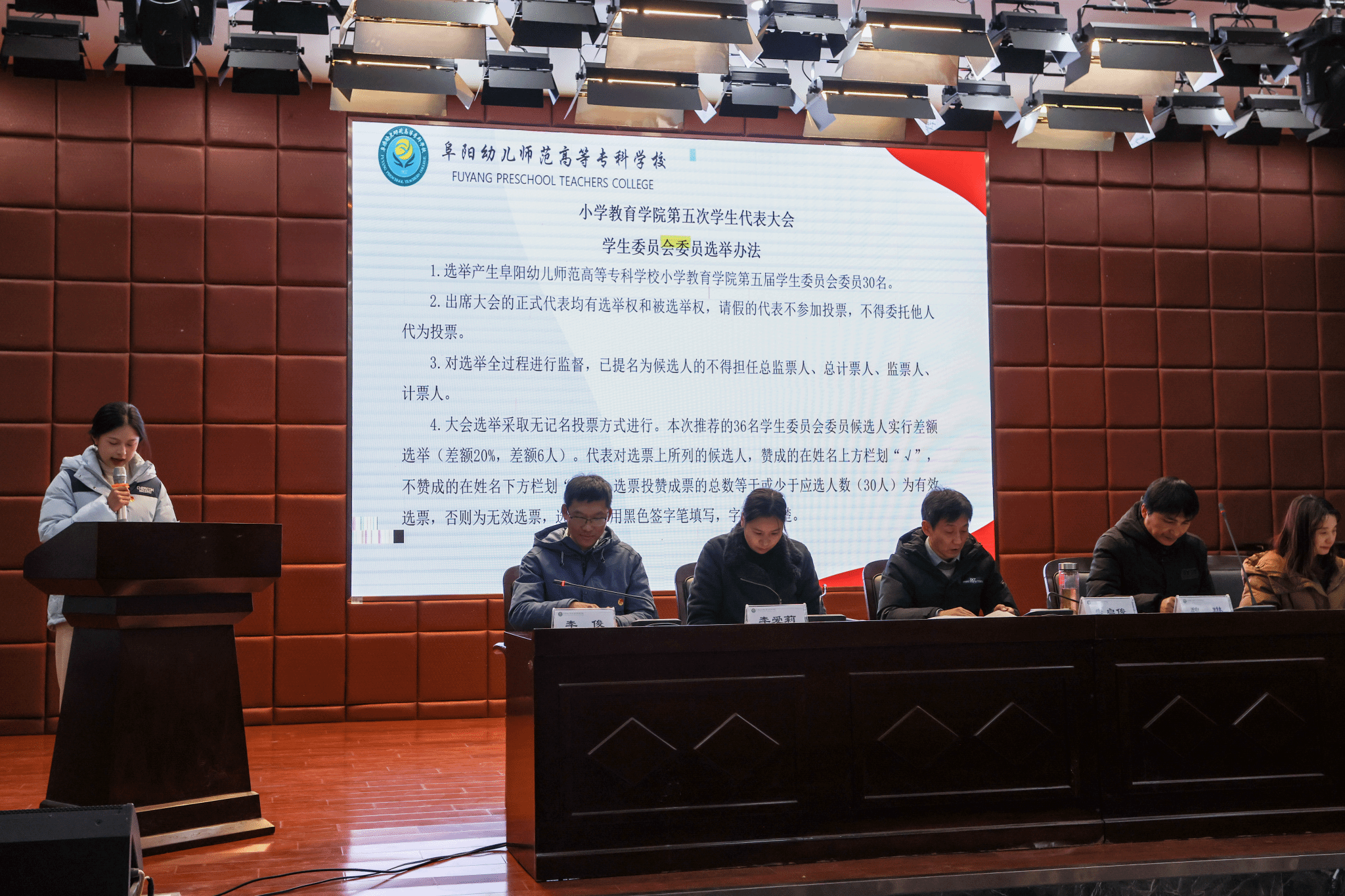 为深入学习宣传贯彻党的二十大精神,认真学习领会党的二十届三中全会精神和习近平总书记考察安徽重要讲话精神,进一步加强学生组织建设,明确未来一年学生委员会的工作重点,同时选举产生新一届学生委员会委员和主席团成员。12月15日晚7时,小学教育学院在学术报告厅召开第五次学生代表大会。学院党总支书记朱启俊、副书记魏琳,学院团总支书记李爱莉、副书记张海燕、学生党支部委员李俊以及102位学生代表参加此次会议,会议由李爱莉主持。