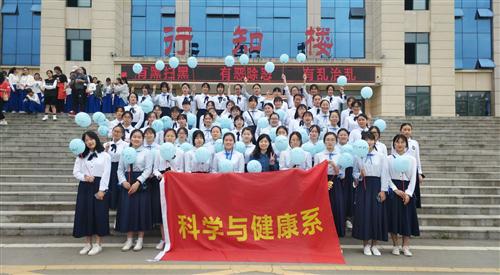 我系第二个上场的表演方阵是青春之花方阵,她们团结向上,她们青春飞扬。领队手中的地球仪象征着我系学子在科学的世界里不断探求真知。“试管试剂试学问深浅,量筒量杯量能力高低”是我系学子背负科学使命、锐意进取的人生信条。大写的KXJK,4个字母,既是科学与健康系的首字母,也是我们所追求的“科学”、“健康”,同时寓意着我系未来会不负众望,更加科学健康的发展下去。