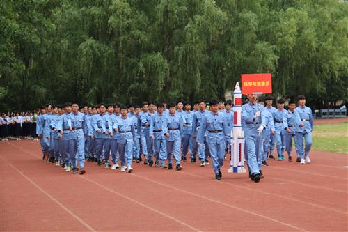 我系第一个上场的表演方阵是星火燎原方阵。他们身着红军军装,抬着火箭前行,整齐的步伐踏着他们必胜的决心,灿烂的微笑写着他们如火的热情,嘹亮的口号体现着他们的实力。他们誓言在追求科学、探索未知的道路上要践行红军坚忍不拔,自强不息,勇往直前的精神。