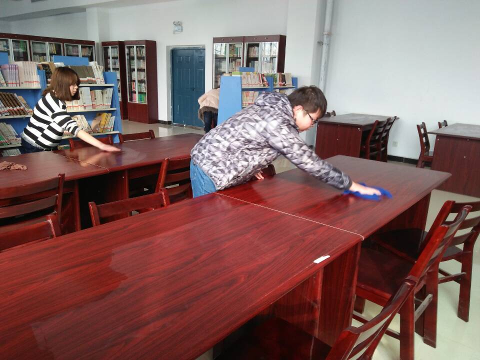 我校图书馆因工作人员不足,在环境维护方面存在困难。我班学生得知后,主动与图书馆负责人联系,把班级49名同学分成5组,利用每周二下午不上课的时间,全员参与,不怕脏,不怕累,将图书馆的各个房间书架、书桌、地面等打扫干净,给我校广大师生创设了一个干净、整洁的阅读环境。同时,我班学生还对此次活动做了总结,少数学生写了感想。