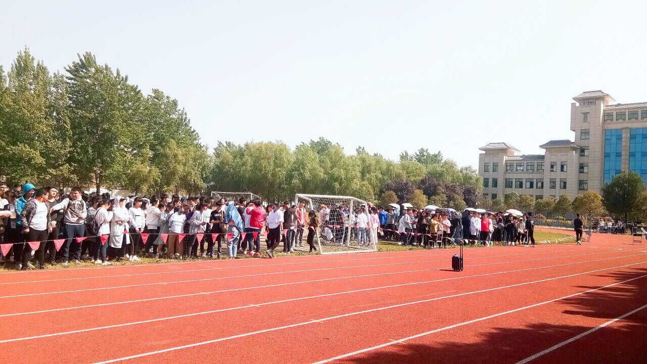 4月18日下午2:30分,我系在操场开展4*100米接力赛,赛道两旁挤满了人,大家脸上都兴奋不已,都把目光集中在赛道上。
