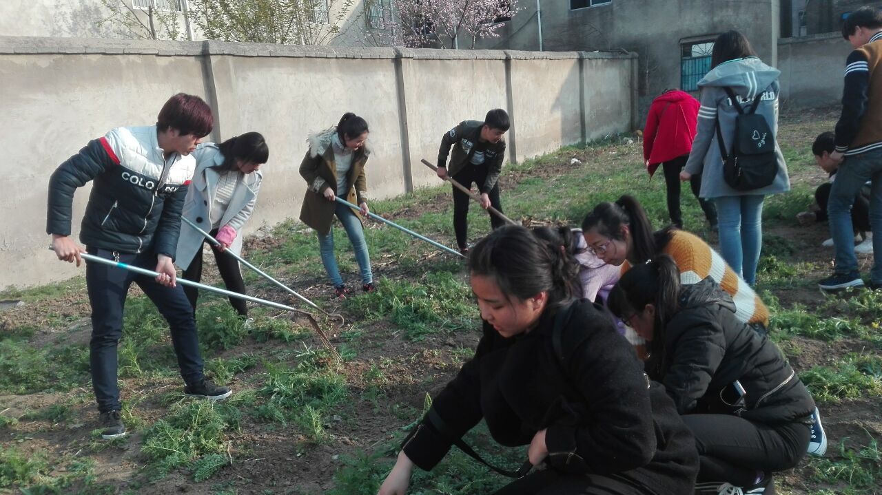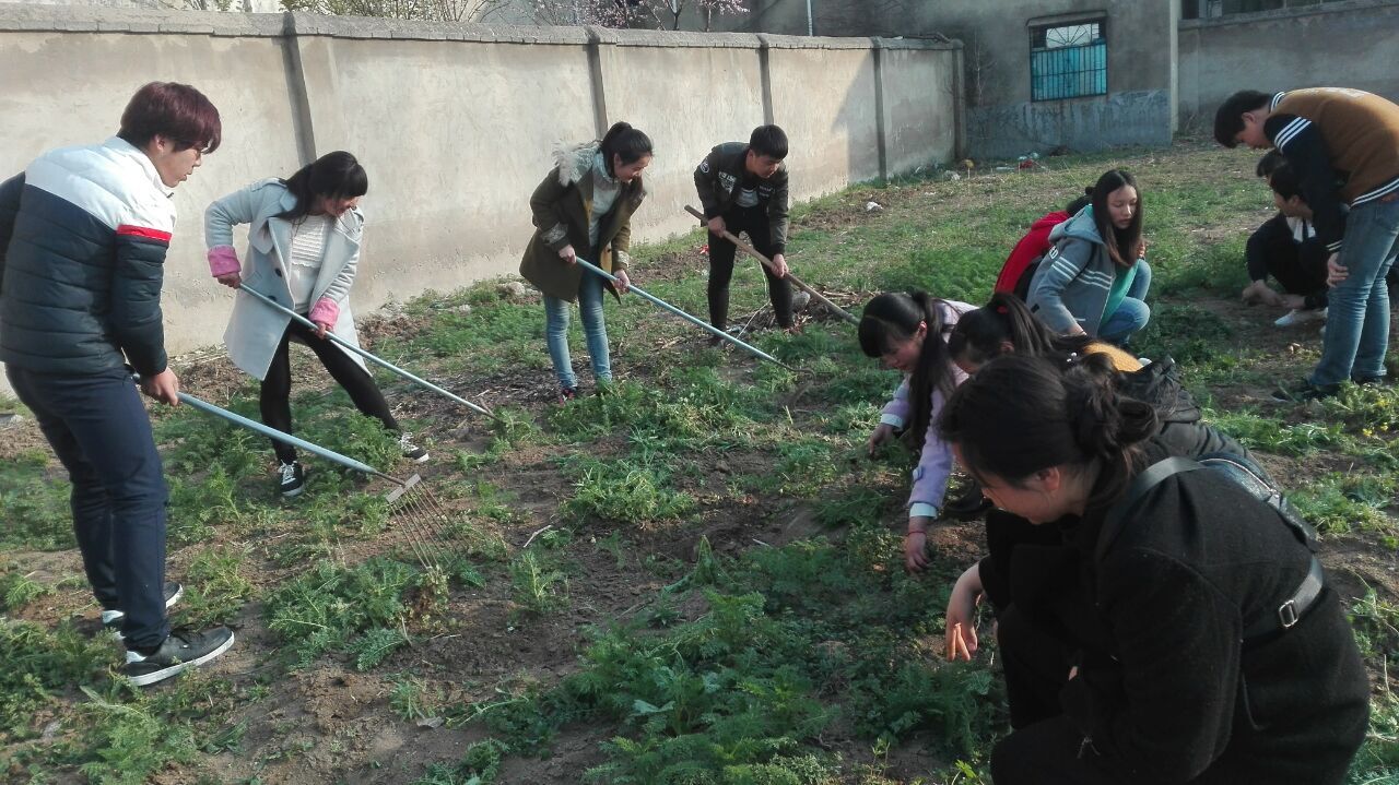 2016.3.21日课外活动,科学与健康系师生在系部的带领下,集体来到本系的植物园,进行植物园的日常维护工作。