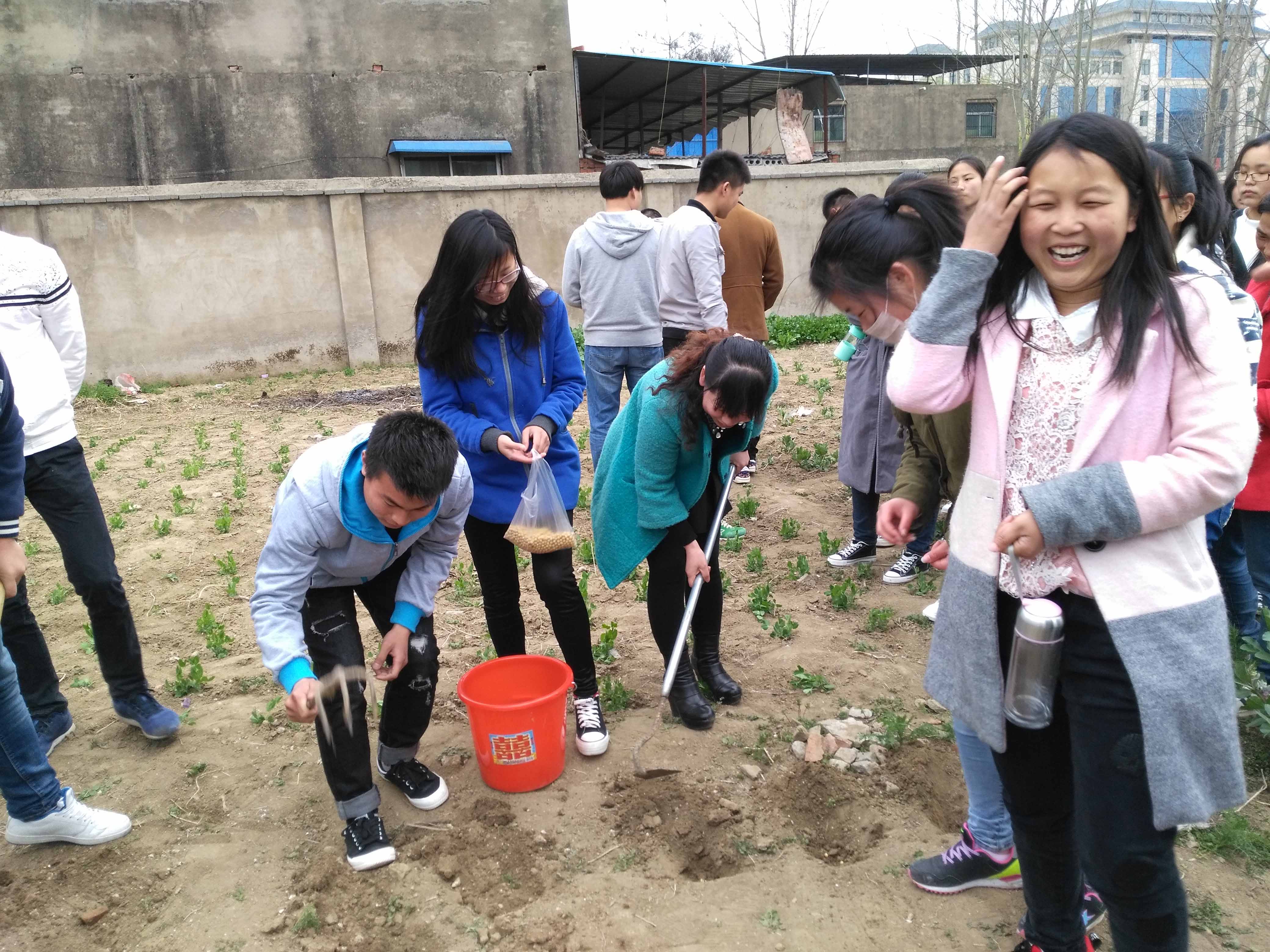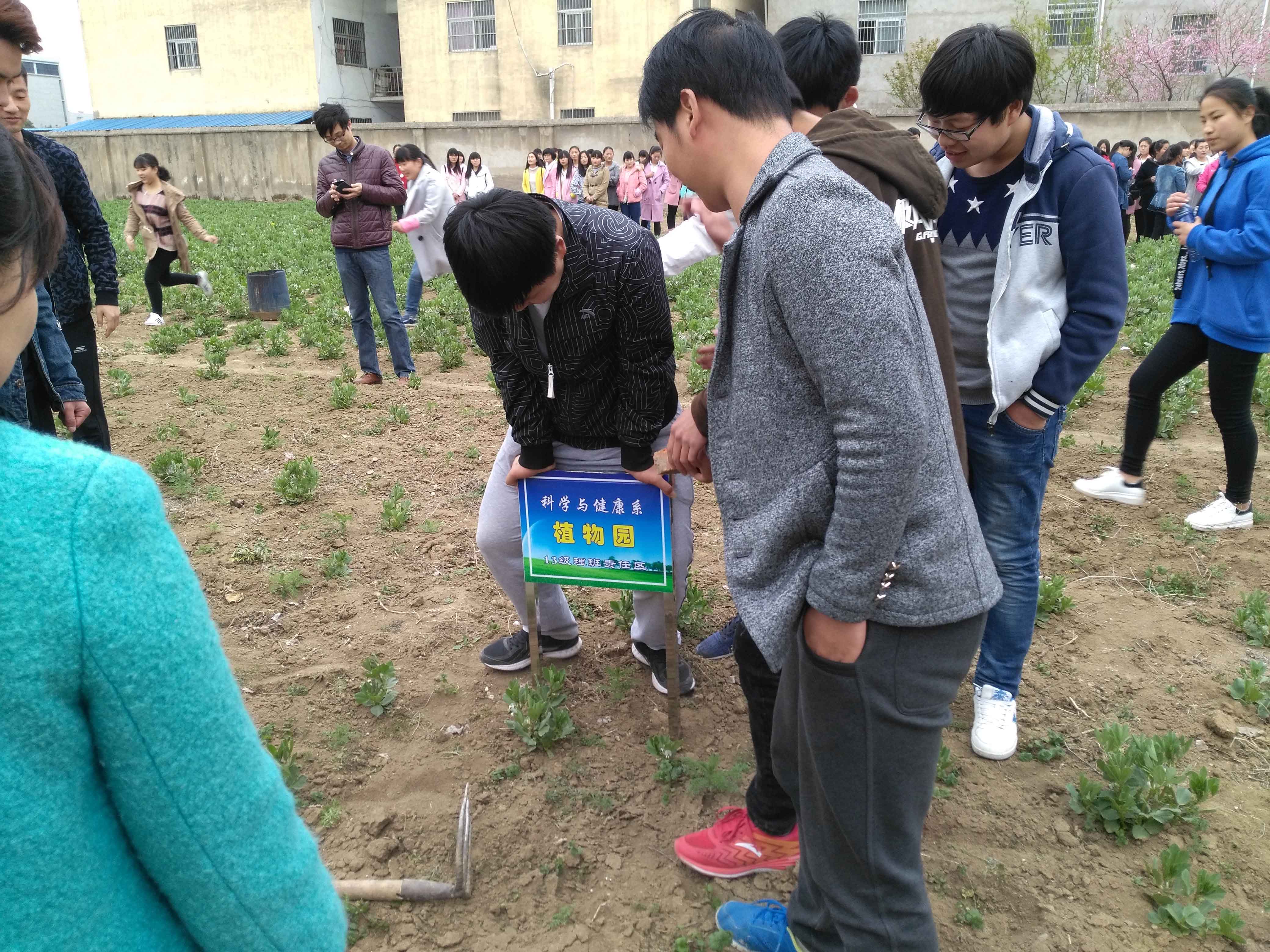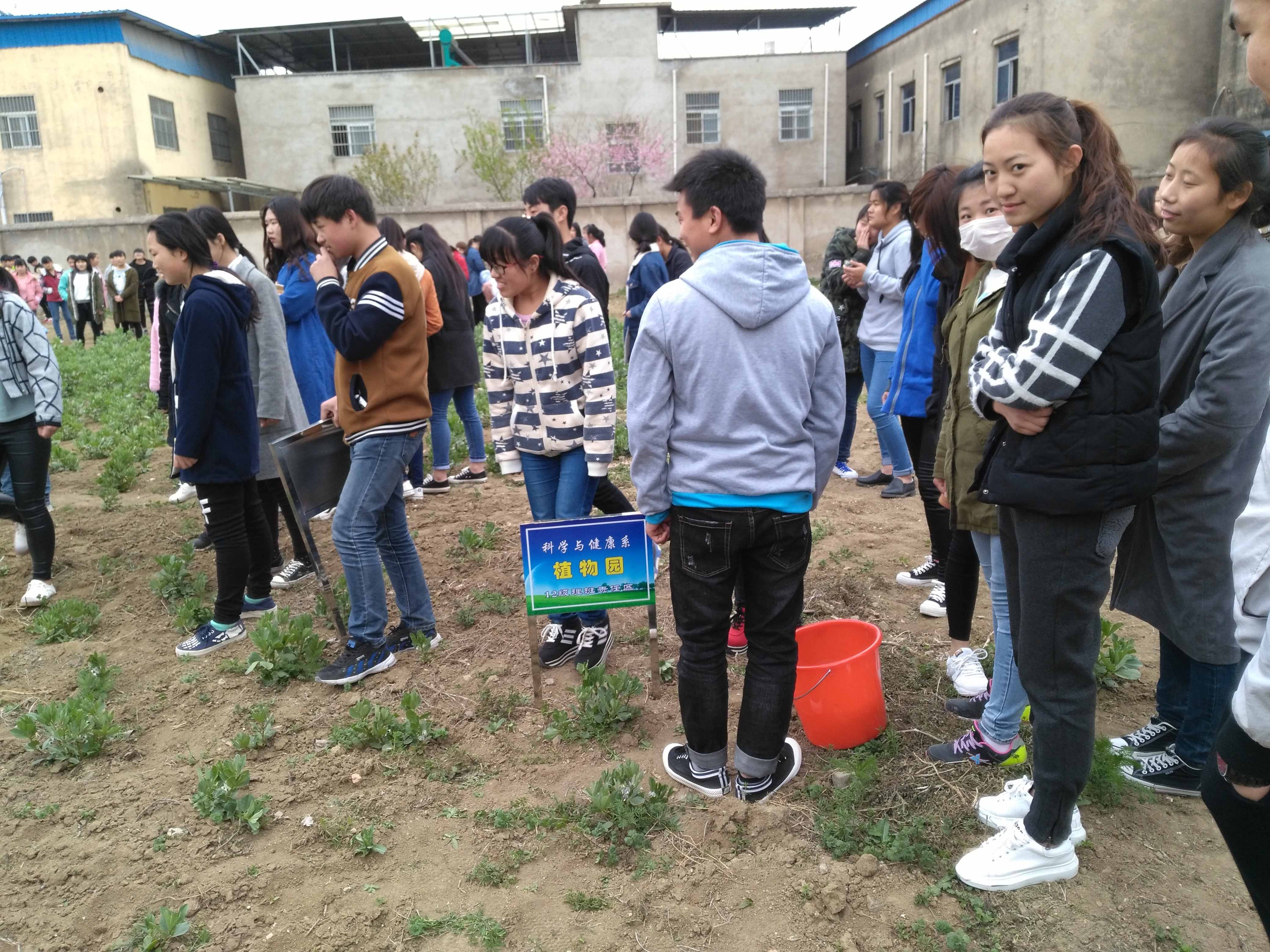 3月23日下午课外活动时间,科学健康系非毕业班同学在系主任郭玉敏主任和各班班主任的带领下来到了本系的植物园,首先划分了各班的植物园区域,并插牌。然后每班在各自的区域种植作物。