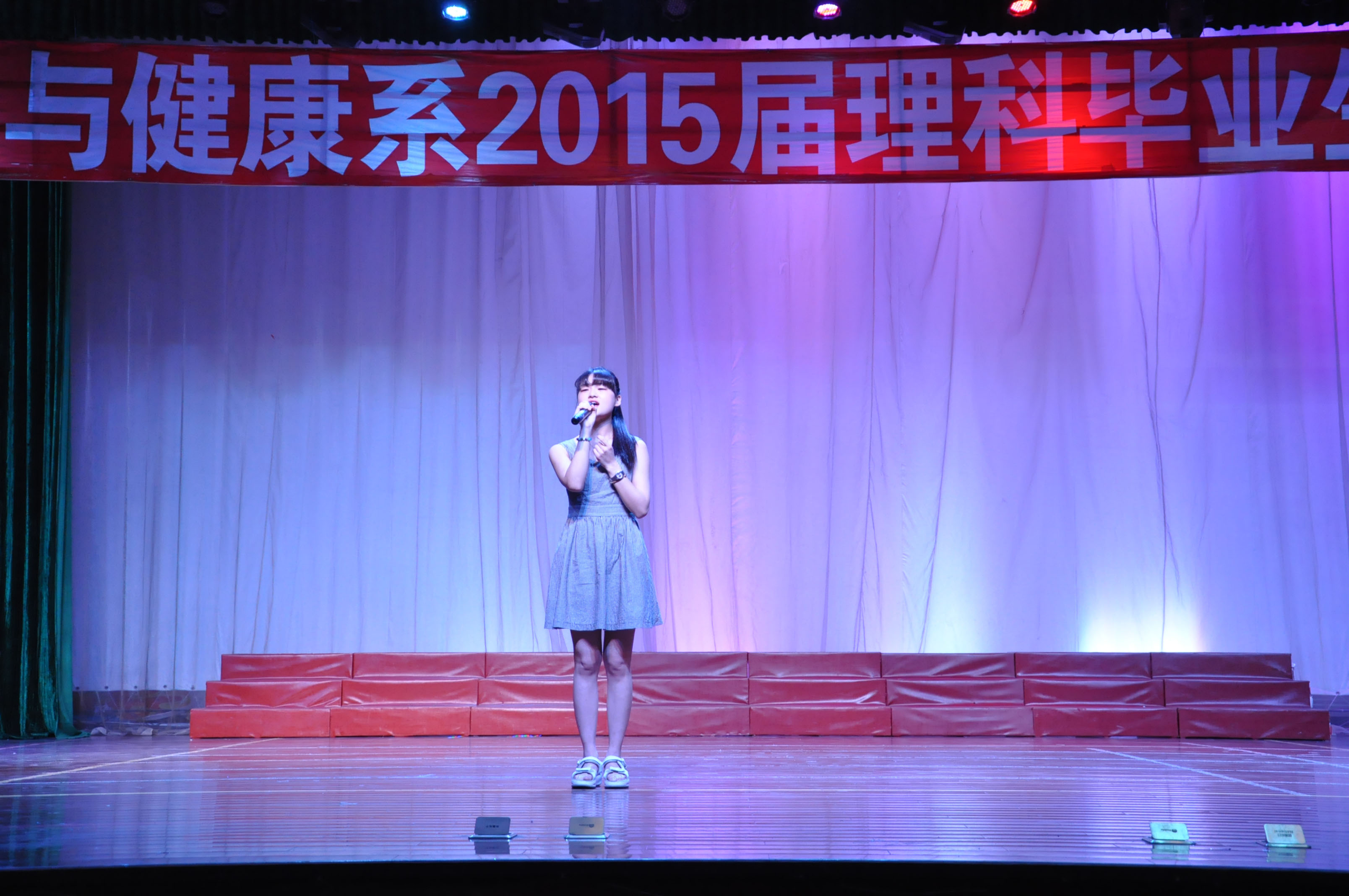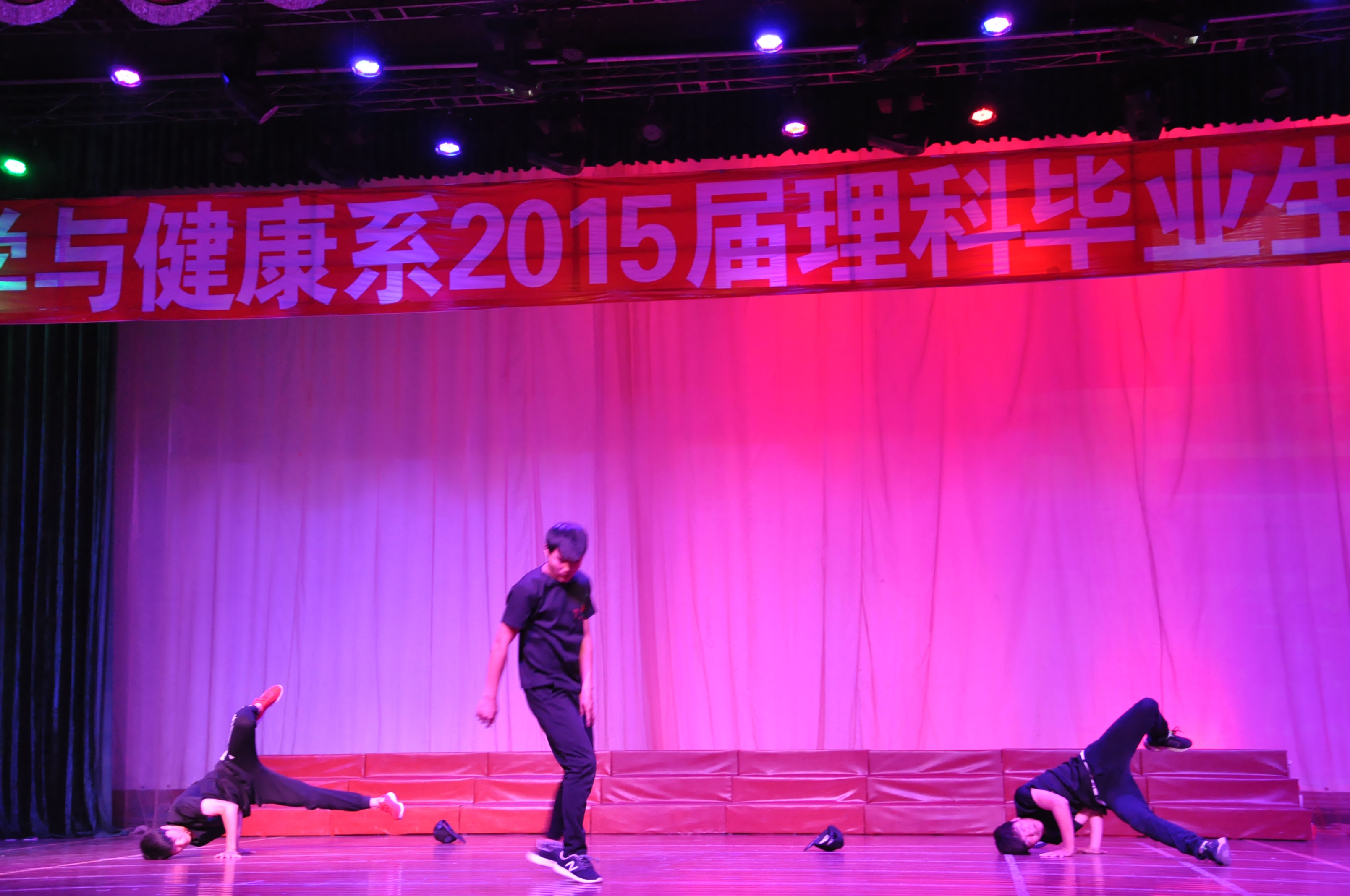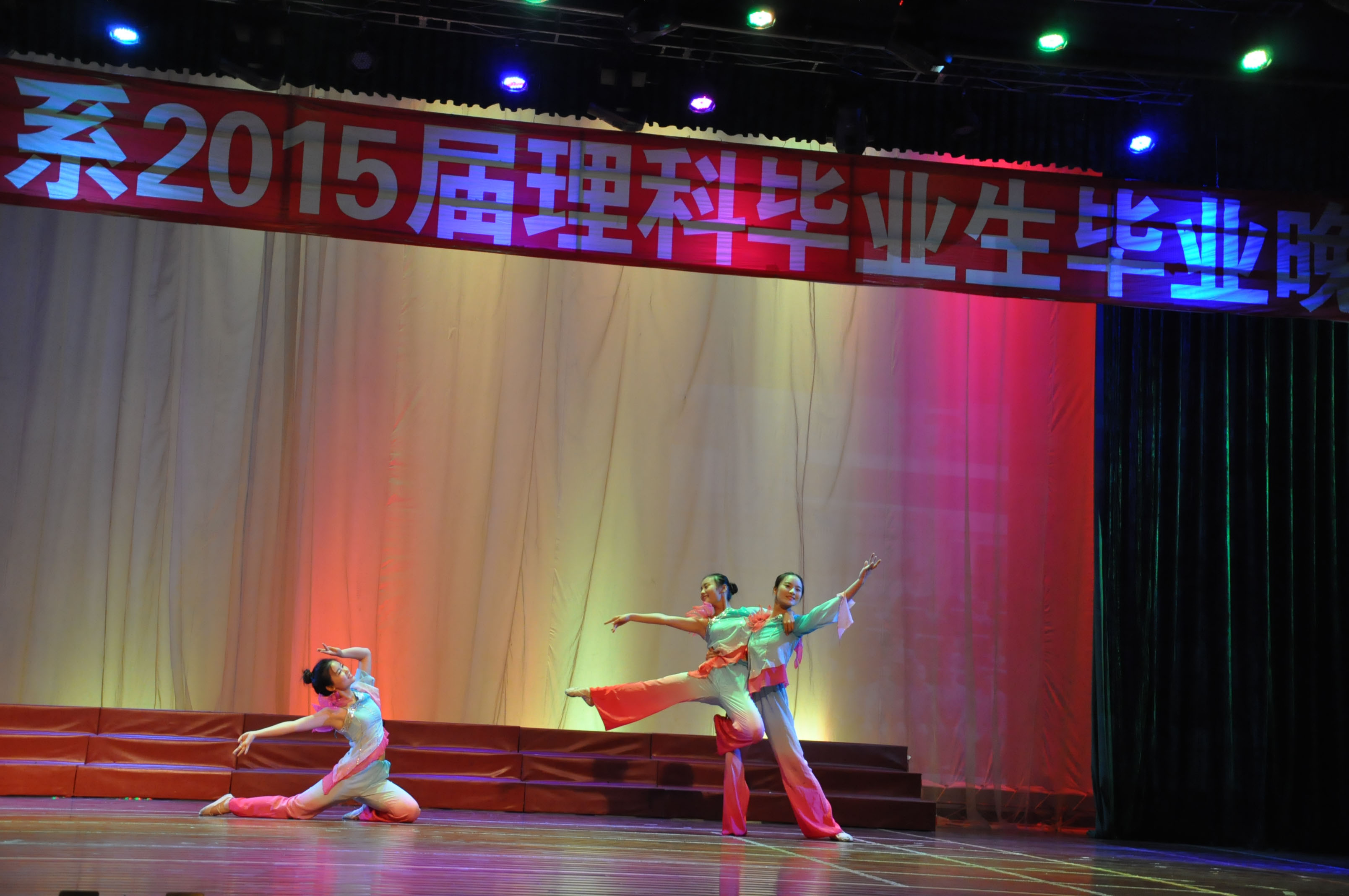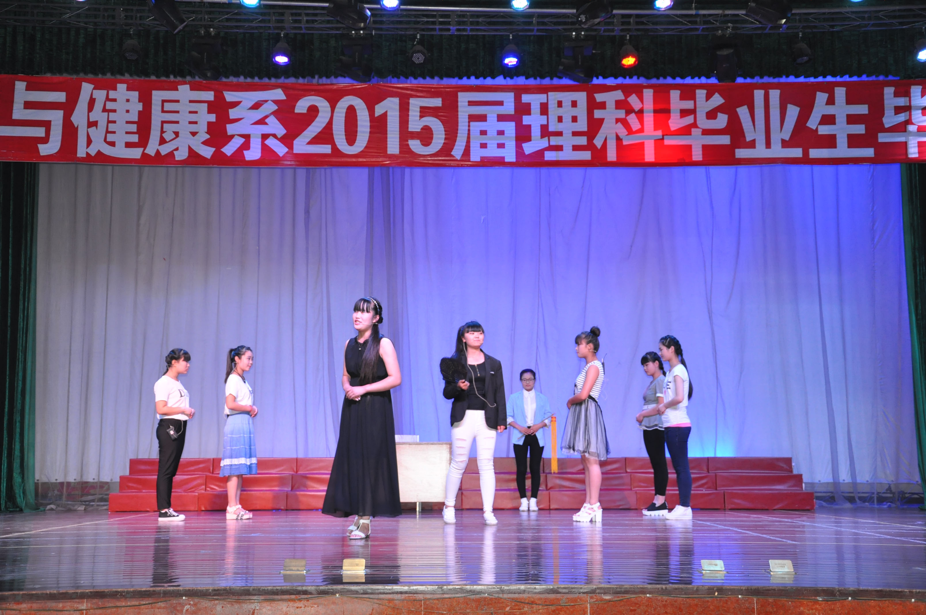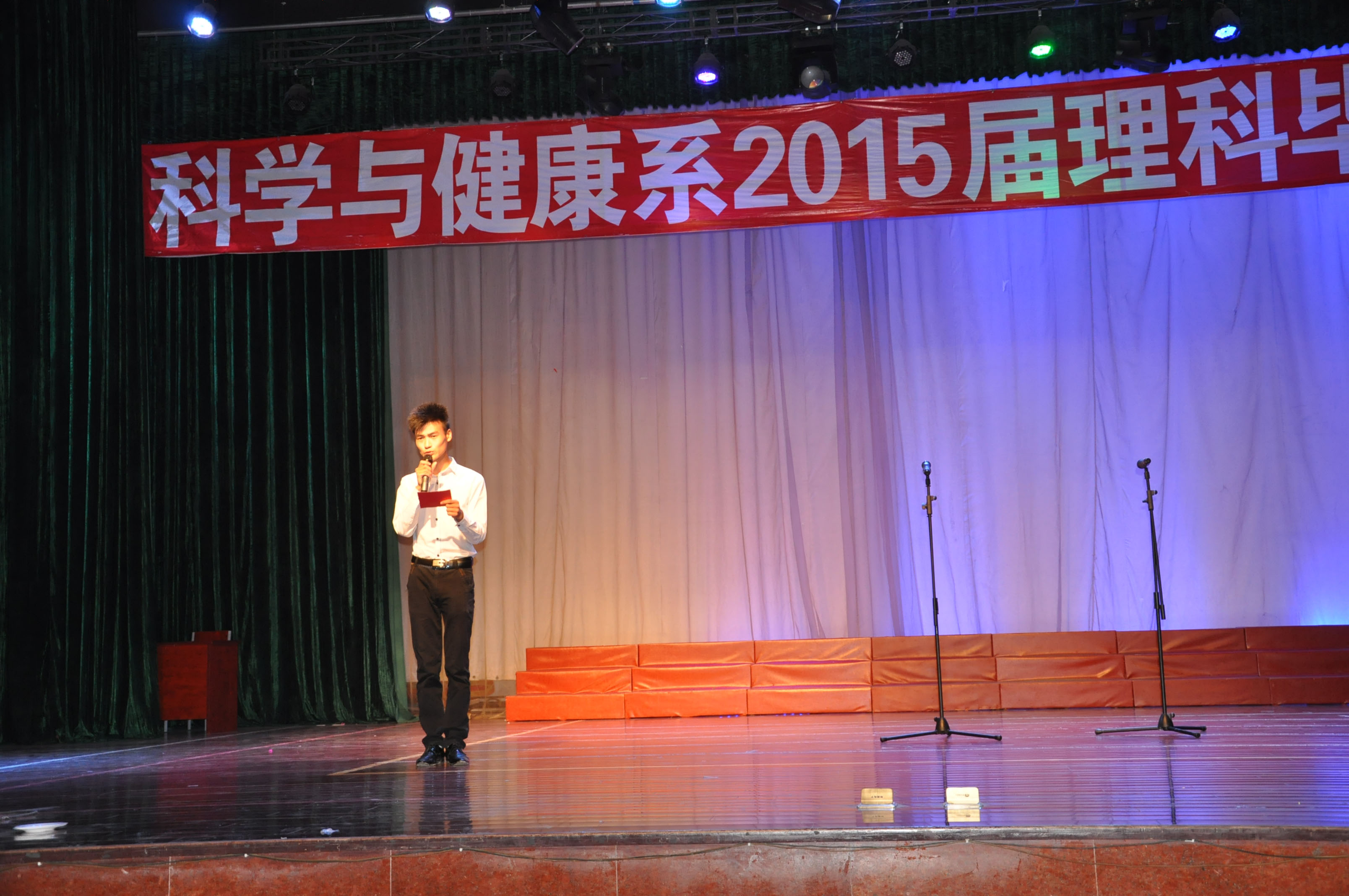 2015年6月3日晚18点整,科学与健康系2015届理科班毕业晚会在学校演播大厅正式拉开帷幕。在历时两个半小时的晚会中,由系老师、学生和毕业班学生为大家奉上了一场含有浓浓离别之情的欢送晚会。