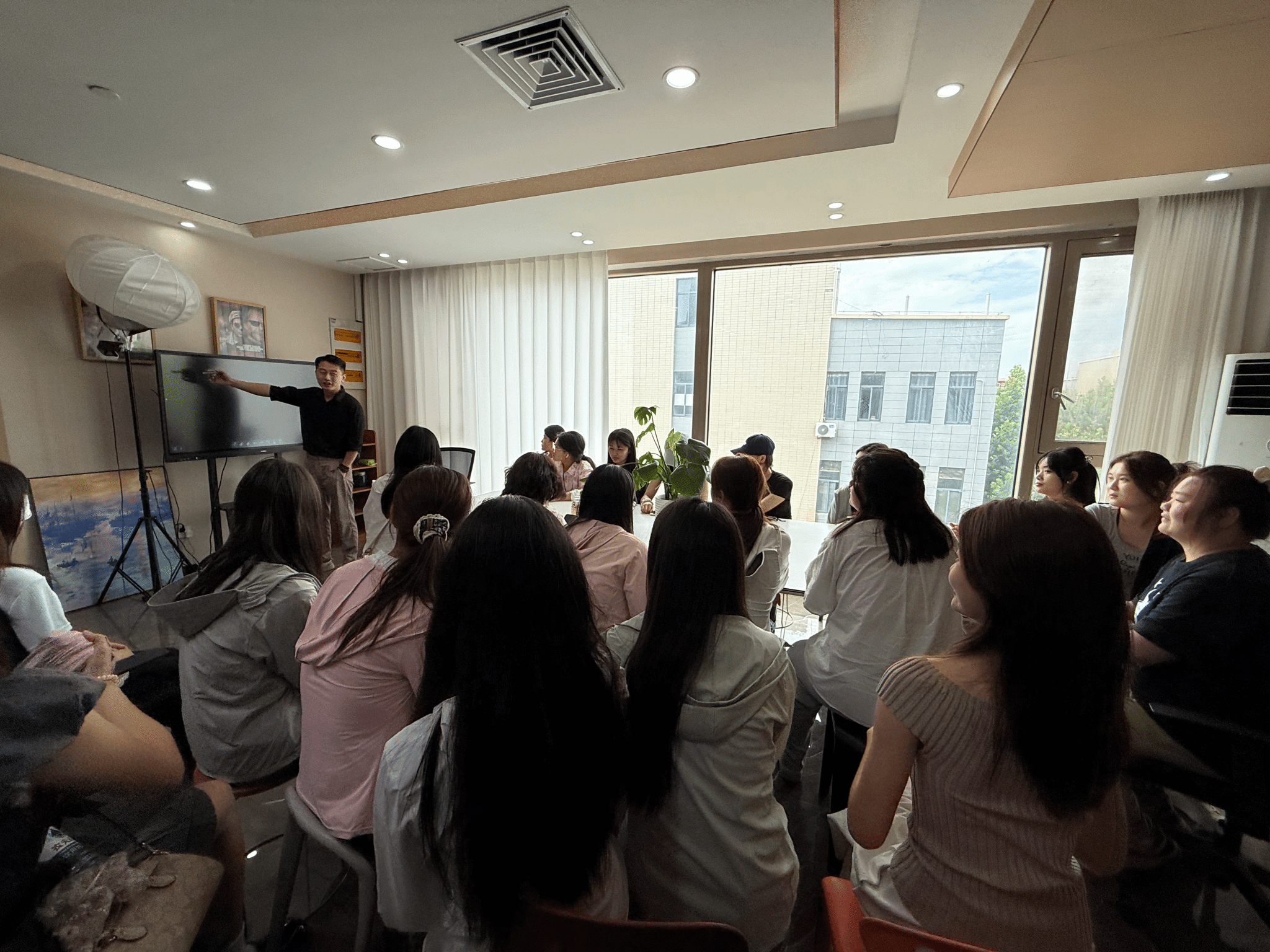 田总首先带领大家参观了企业环境,直播场地,让学生们了解直播设备;介绍了企业的建设历程、工作内容、工作需求,带领学生们沉浸式体验了企业文化。并回答了学生关于就业薪资、工作时长、岗位类别等问题,与同学们相谈甚欢,也解决了同学们心中的疑惑。