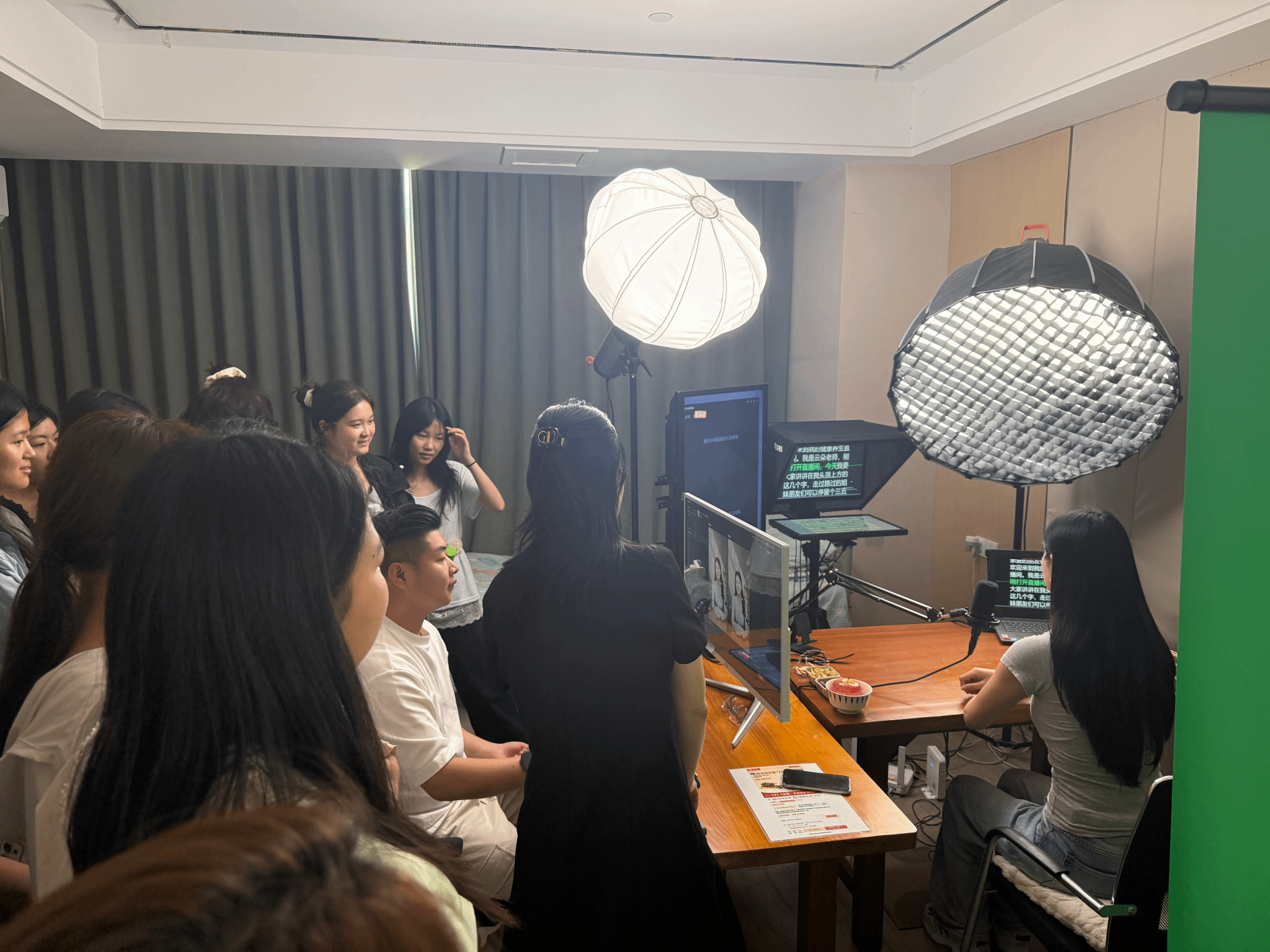 随后,带领学生们进入到直播间当中深度感受直播带货的真实场景、工作流程,以及主播、运营岗位的工作要求。学生们纷纷现场体验直播带货、现场学习主播、运营等相关工作。