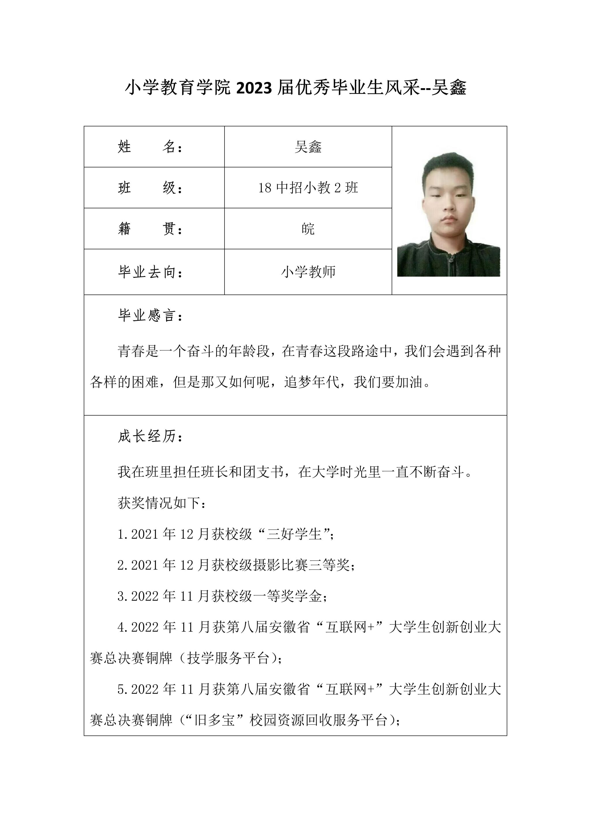 小学教育学院2023届优秀毕业生风采--吴鑫