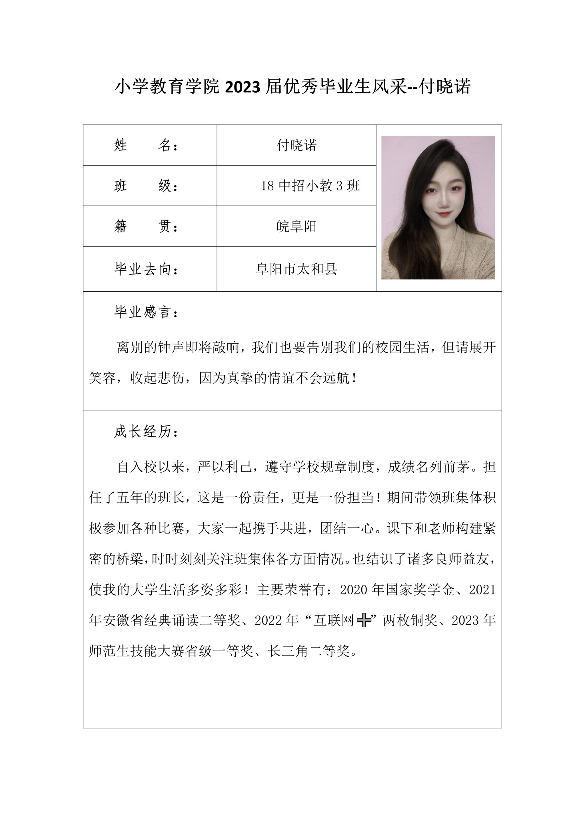 小学教育学院2023届优秀毕业生风采--付晓诺