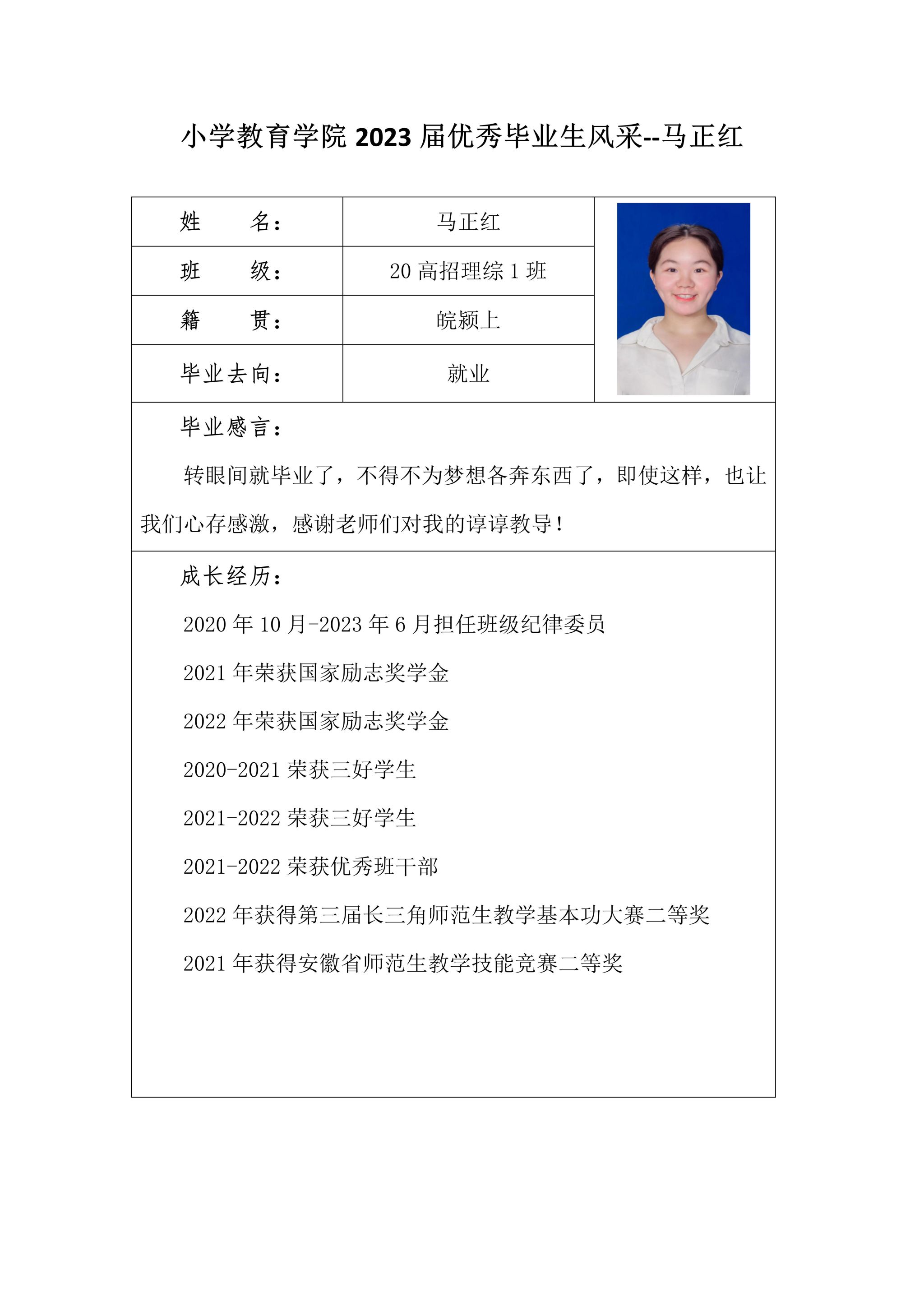 小学教育学院2023届优秀毕业生风采--马正红