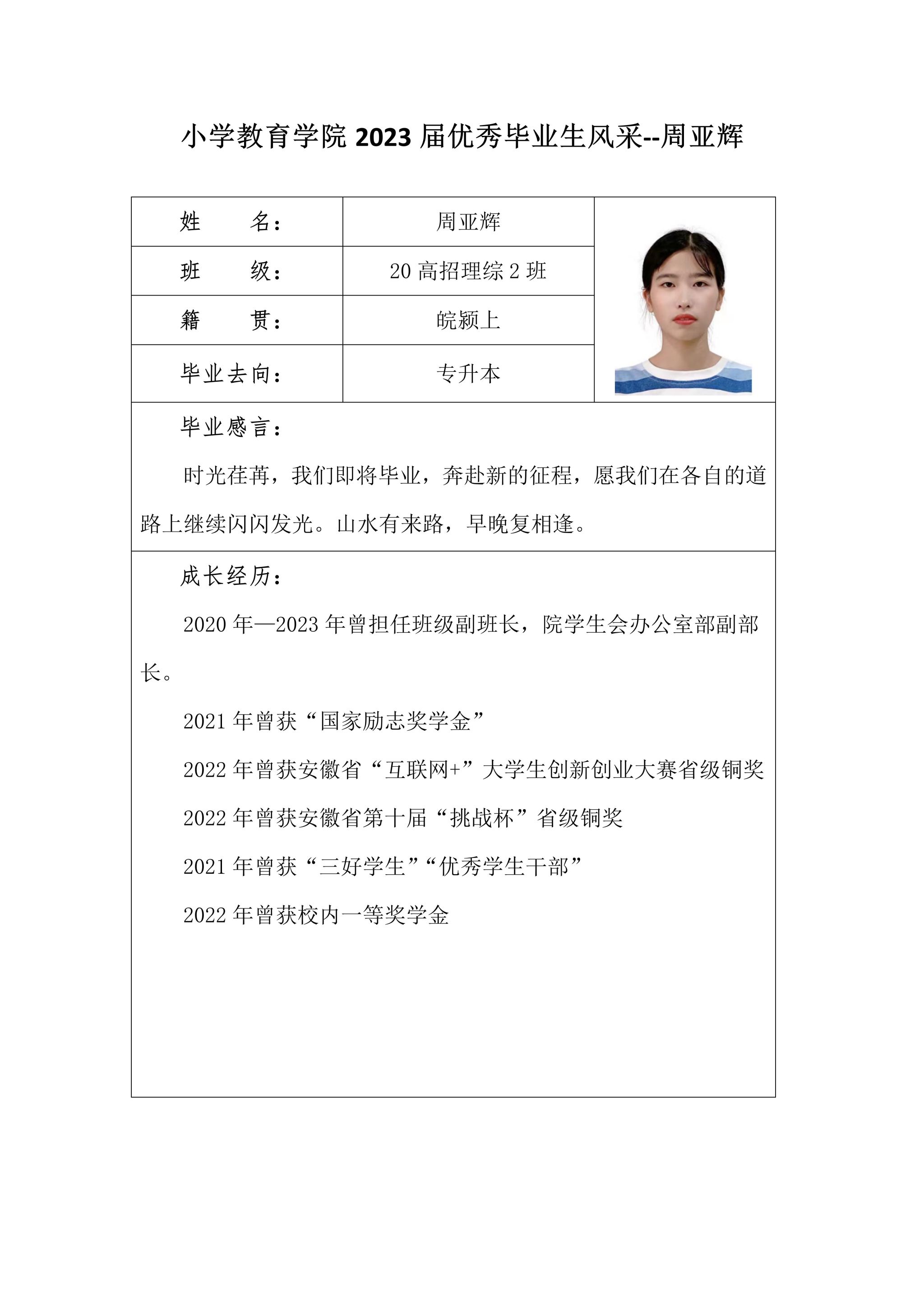 小学教育学院2023届优秀毕业生风采--周亚辉