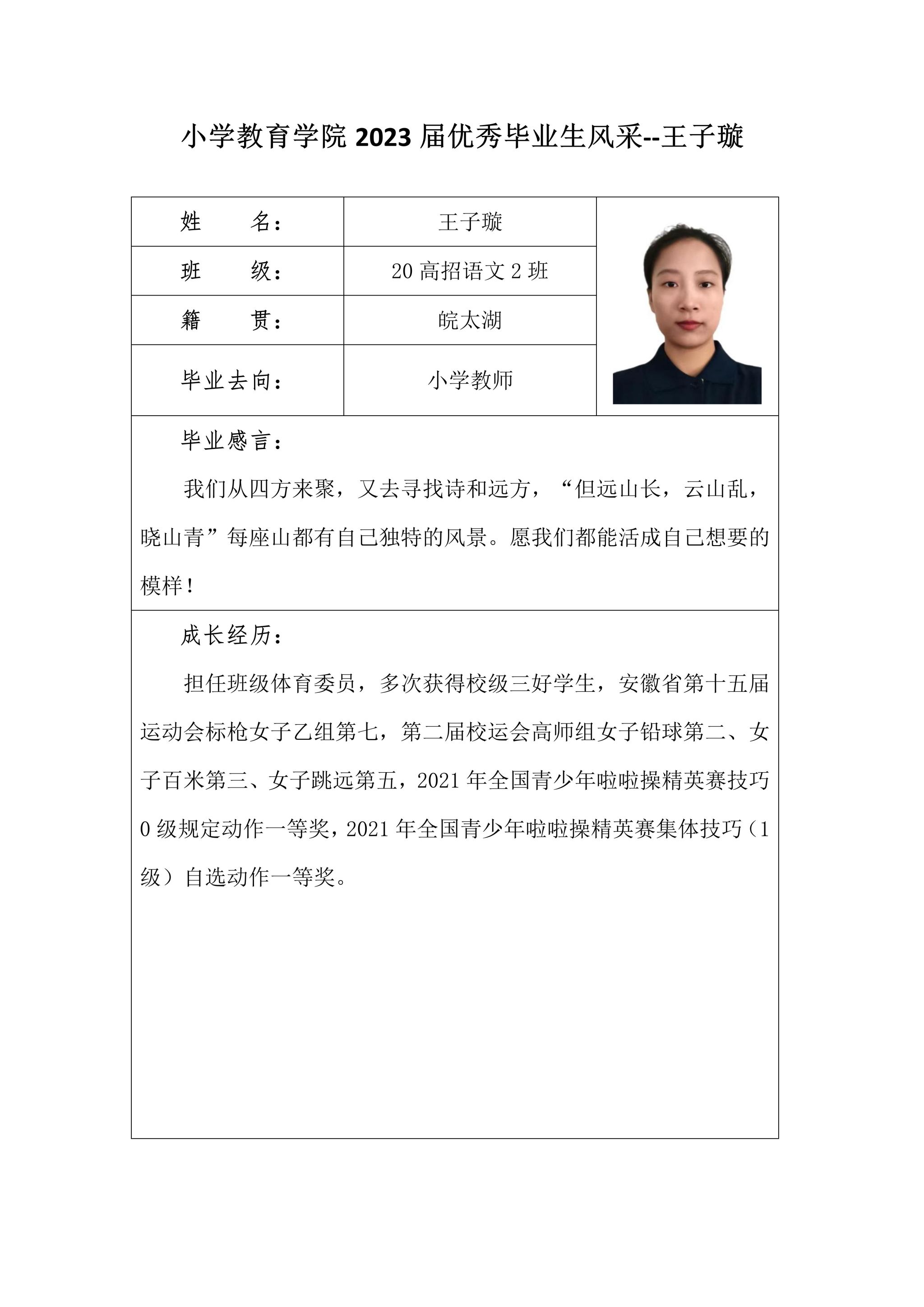 小学教育学院2023届优秀毕业生风采--王子璇