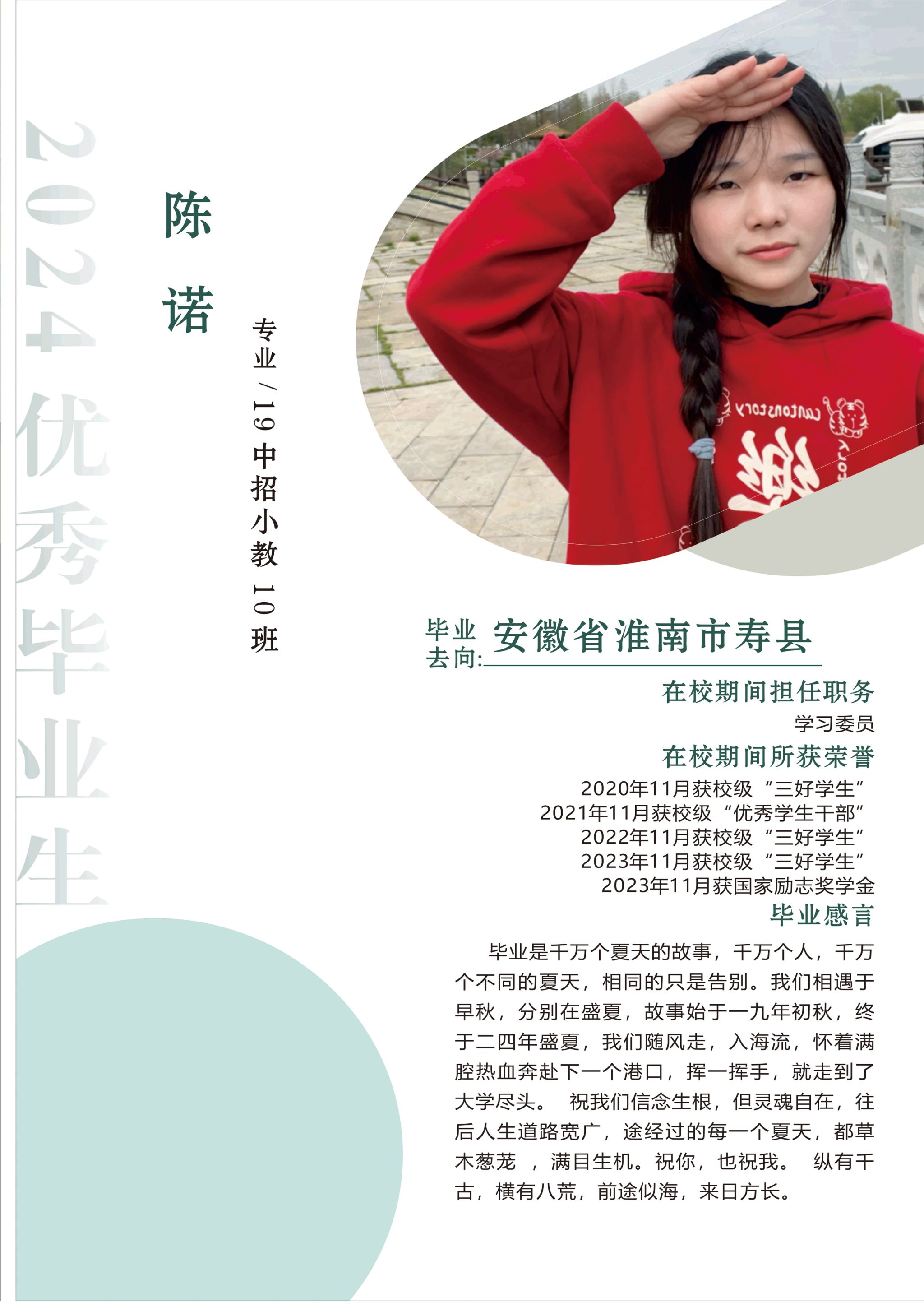 小学教育学院2024届优秀毕业生风采--陈诺