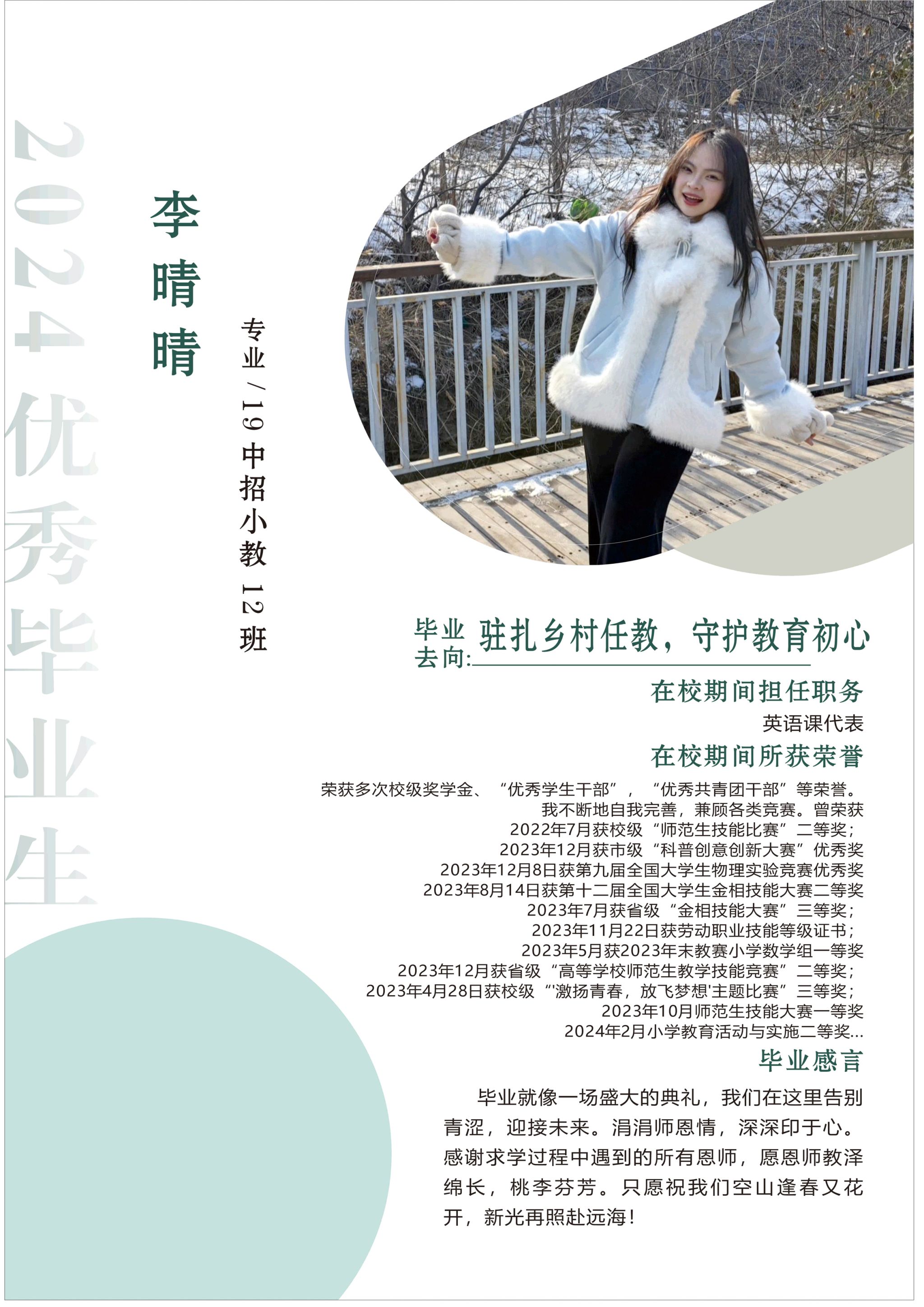 小学教育学院2024届优秀毕业生风采--李晴晴