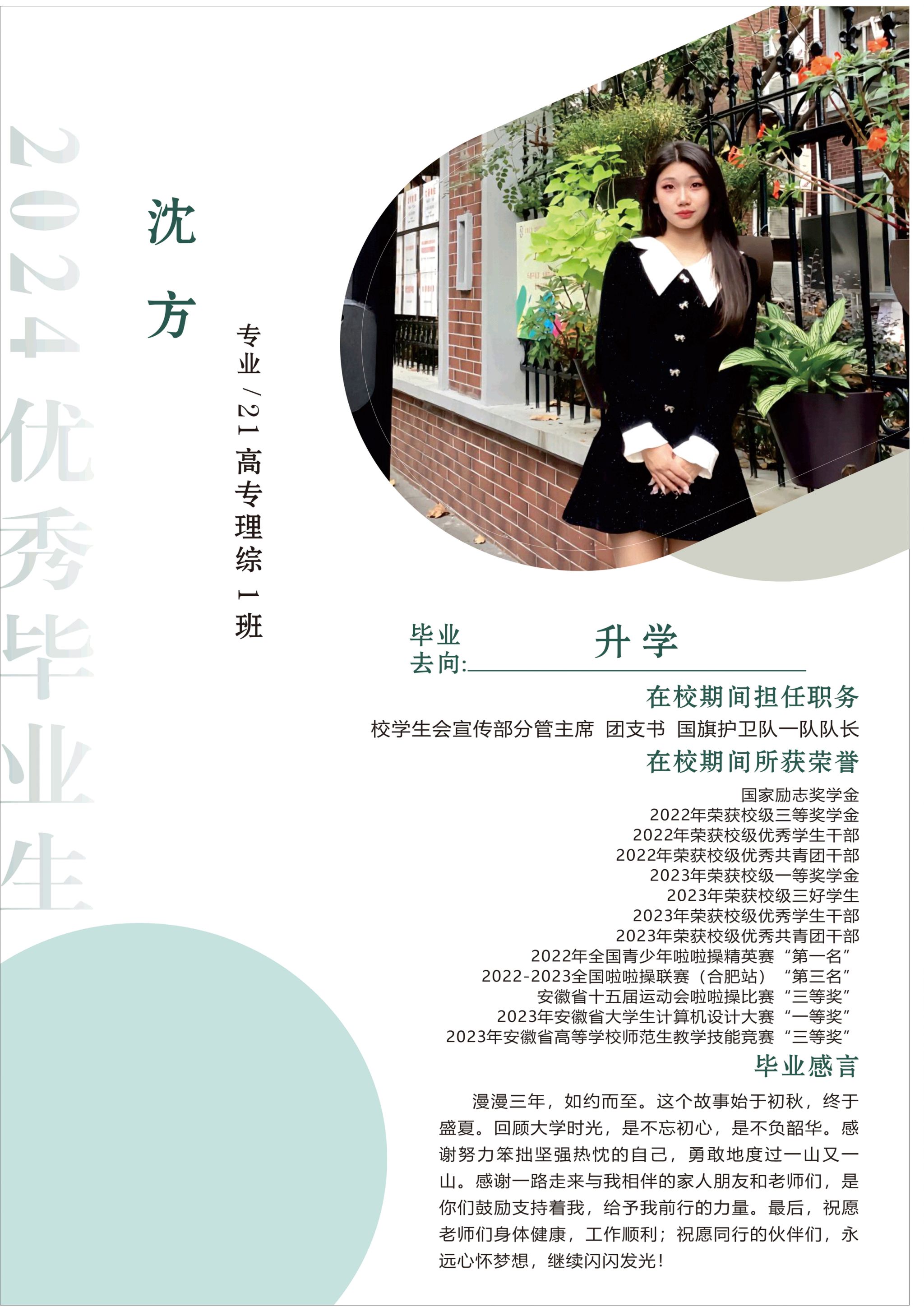 小学教育学院2024届优秀毕业生风采--沈方