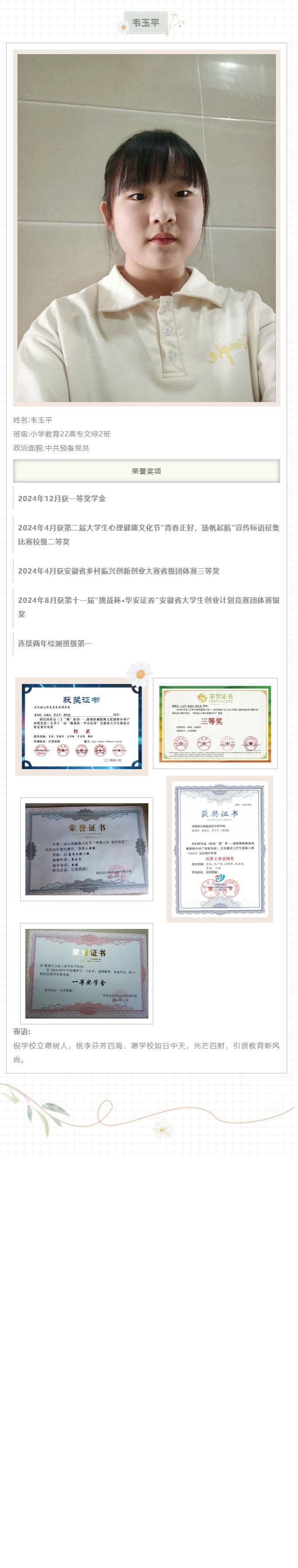 小学教育学院2025届优秀毕业生风采--韦玉平